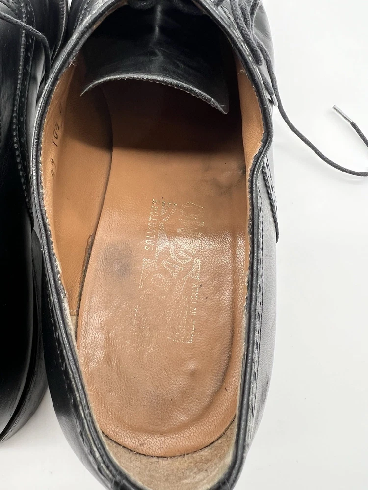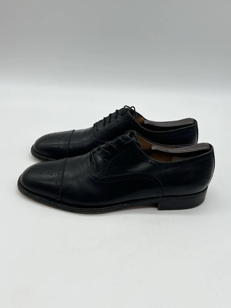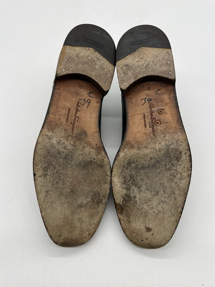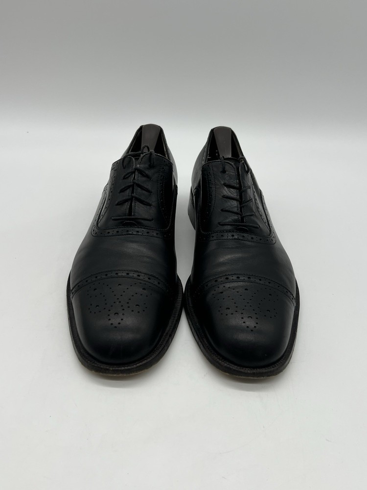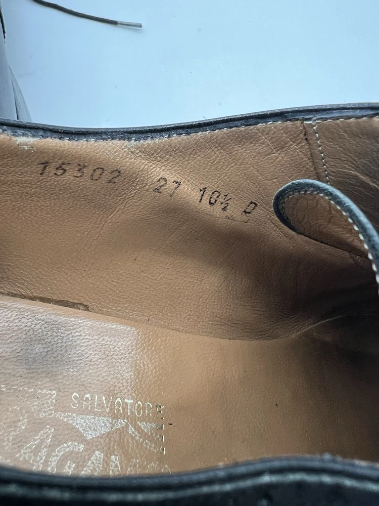 UK Shoe Size: 9.5 Product Line: Salvatore Ferragamo Closure: Lace Up Season: Fall, Summer, Spring, Winter Vintage: No EU Shoe Size: 43.5 Customized: No US Shoe Size: 10.5 AU Shoe Size: 10.5 Features: Wingtip, Cap Toe, Breathable, Comfort Lining Material: Leather Model: Oxfords Brand: Salvatore Ferragamo Toe Shape: Round Toe Pattern: Solid Shoe Width: D Type: Dress Color: Black Upper Material: Leather Style: Oxford Insole Material: Leather Department: Men Character: Pebbles Country of Origin: Italy Accents: Logo, Lace Theme: City Outsole Material: Leather