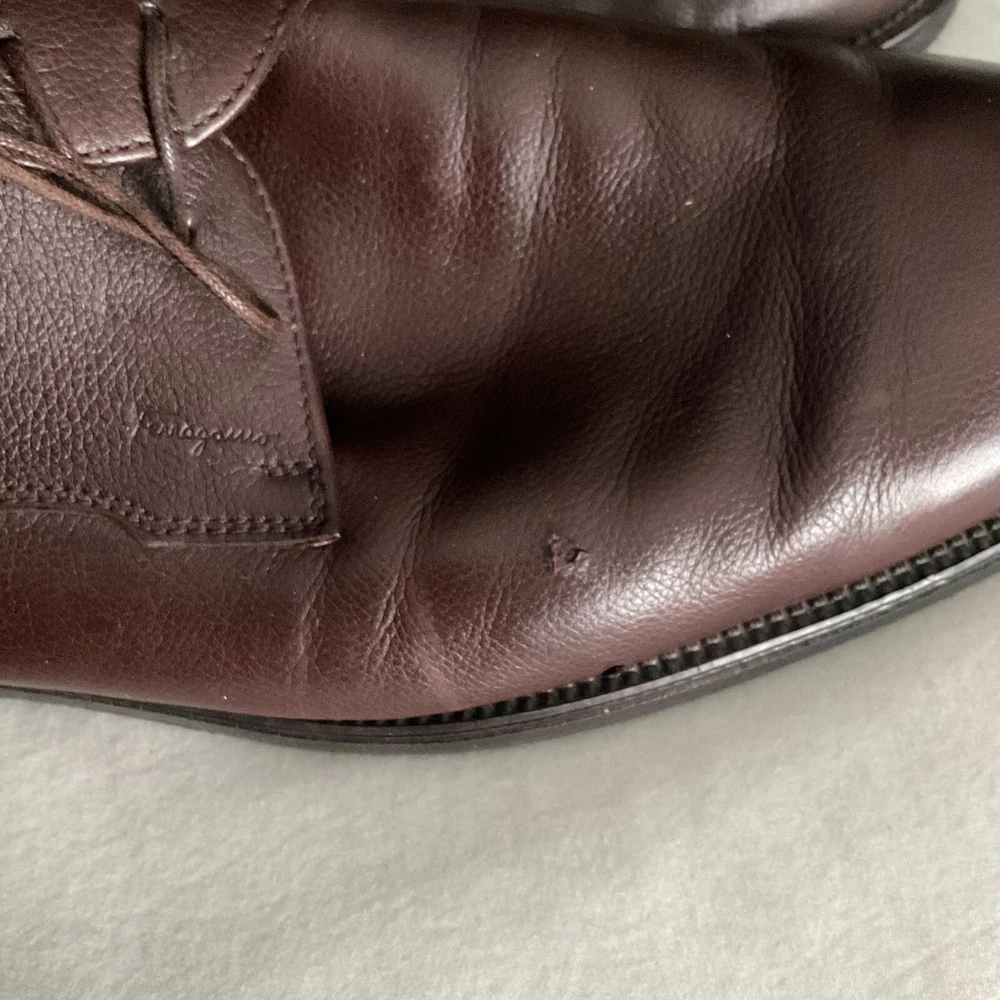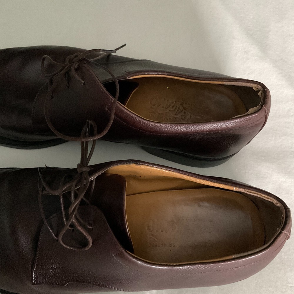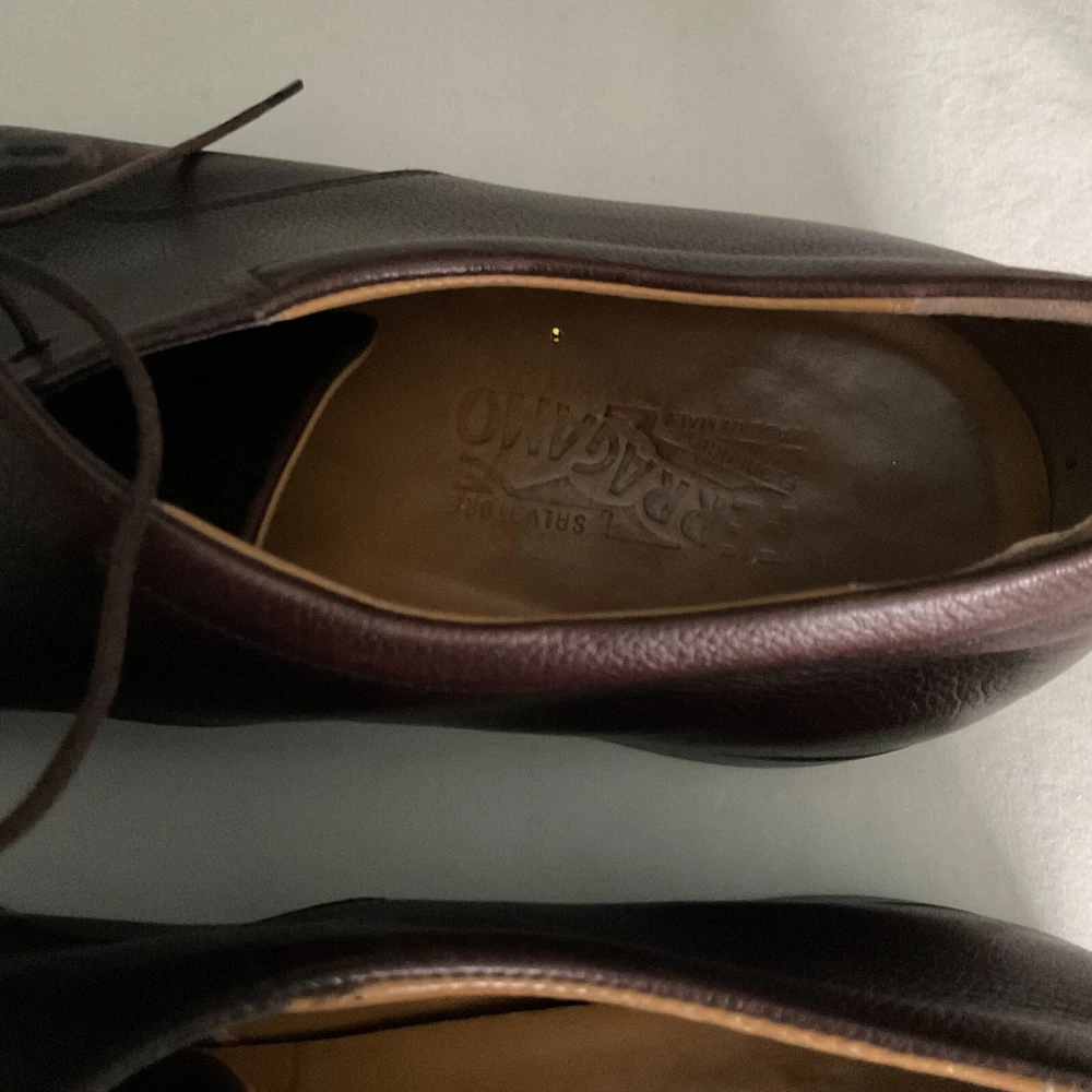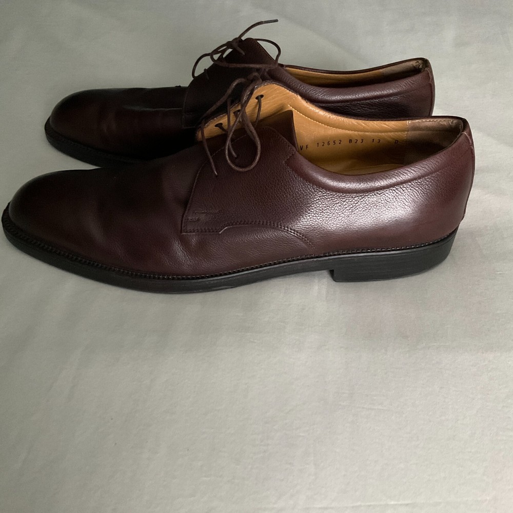 Salvatore Ferragamo Mens Dress Shoe Tie up Brown, pebbled 13 D Preowned condition Defect to R outer area , wear to insole, see photo Please see photos for condition and measurements Color can vary from screen to screen and the actual color may look different in person From clean, smoke free home