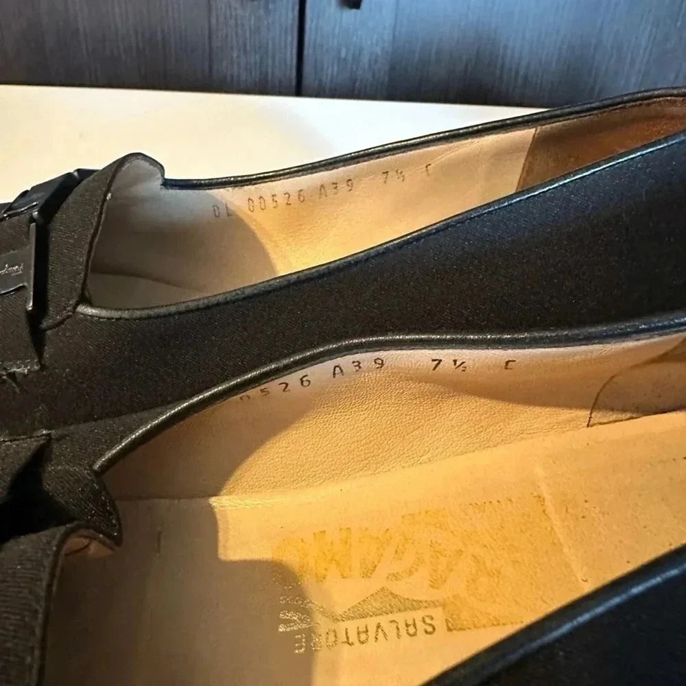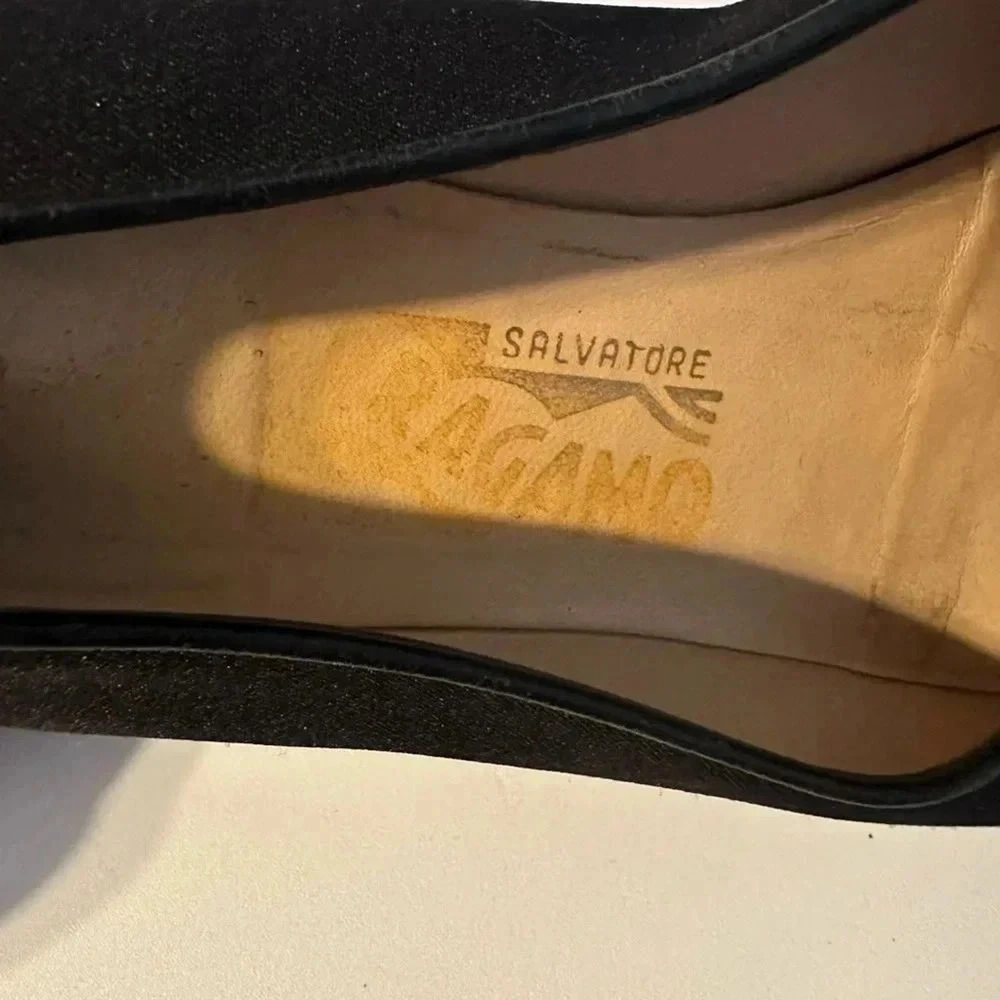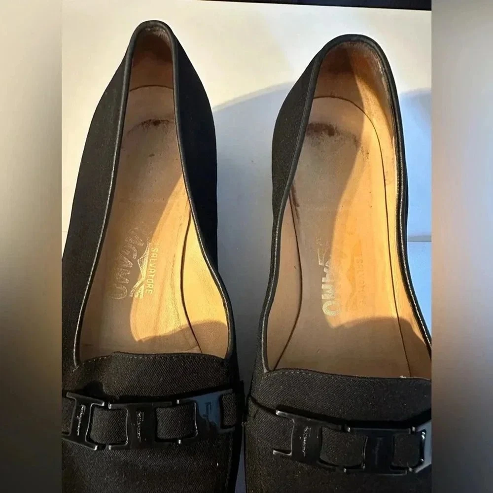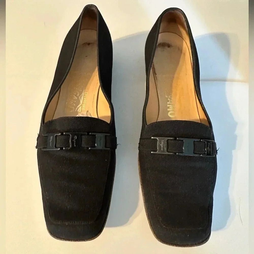 Vintage and comes with original dust covers for each shoe. Brand: Salvatore Ferragamo Style: Loafer Flat Shoes Color: Black Shoe Width: C (standard) Pattern: Solid Closure: Slip On In good used condition. There are signs of wear but the structure of the shoe is excellent. ❤️ Five Star Seller 📬 Fast Shipping 🌱 Sustainable 🚫 Smoke and Fragrance Free Home