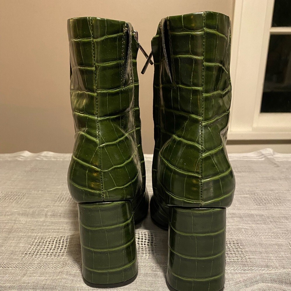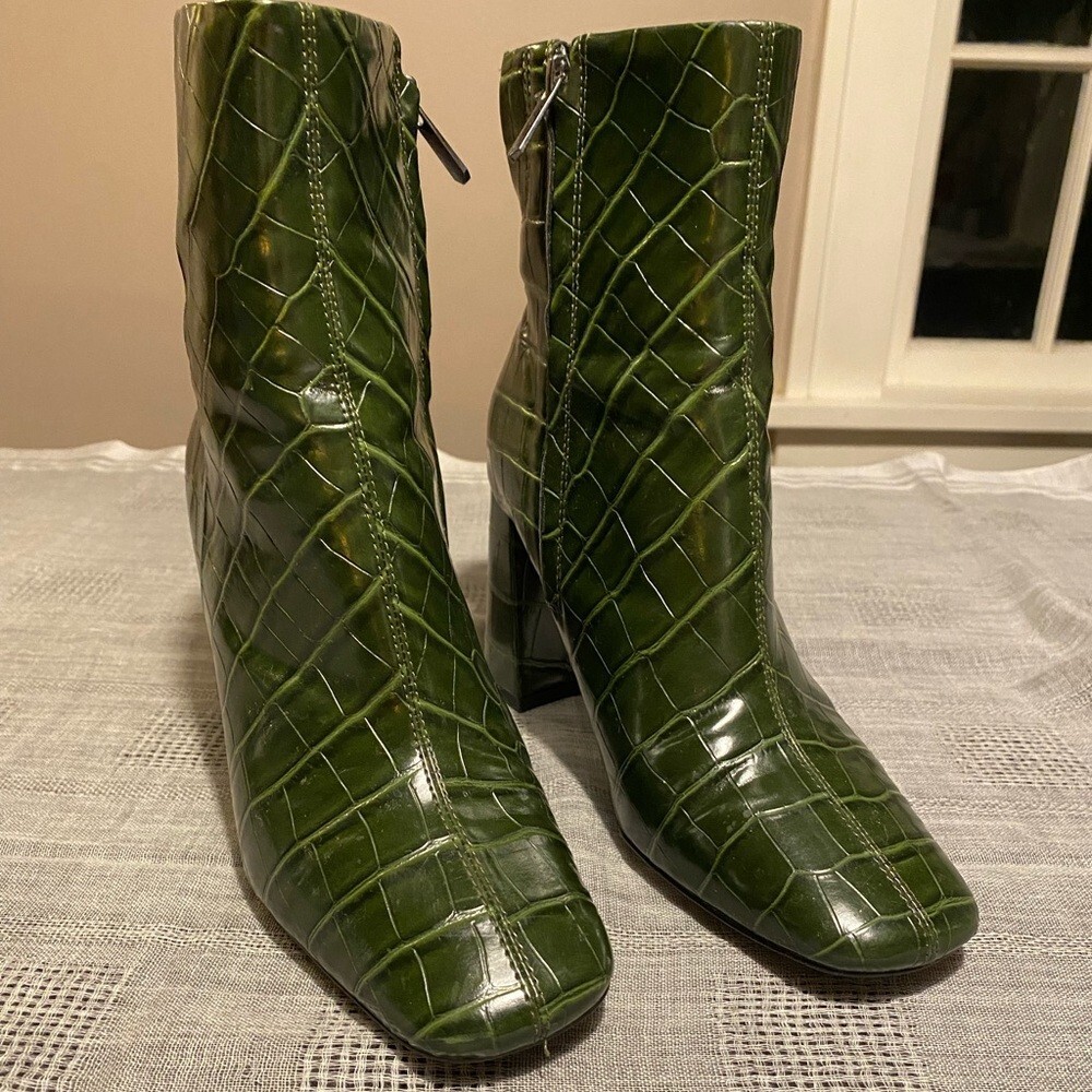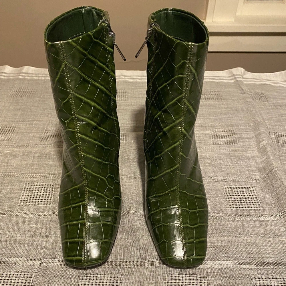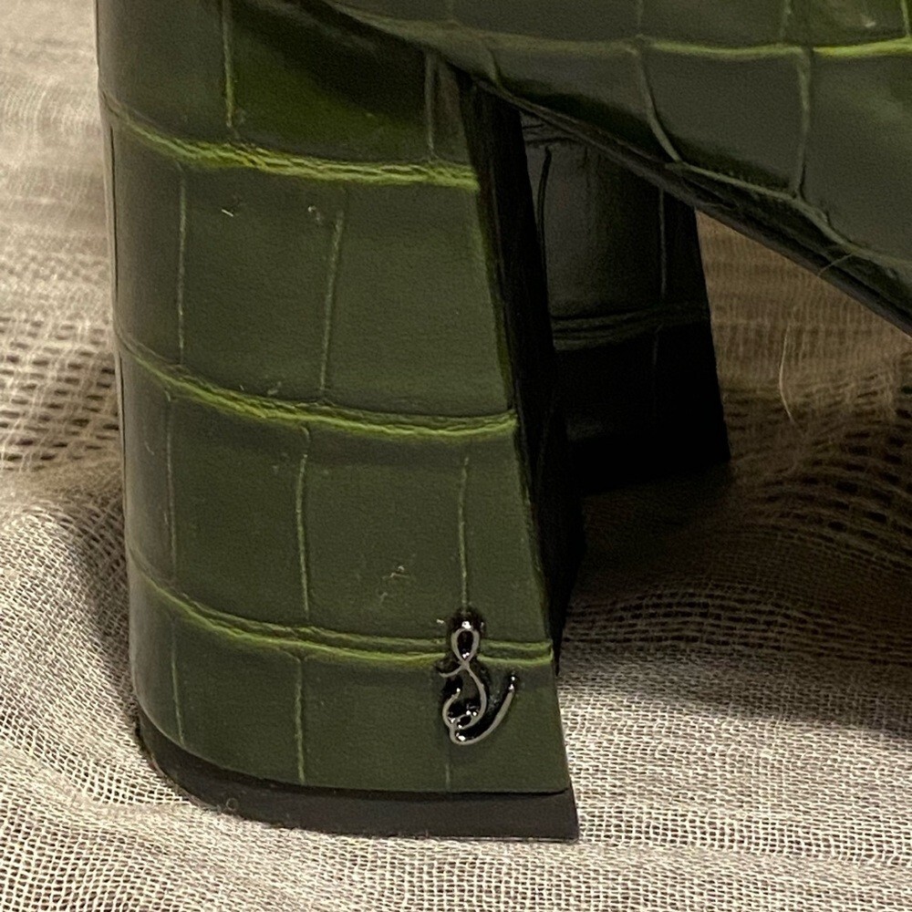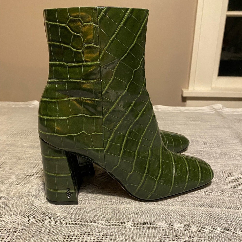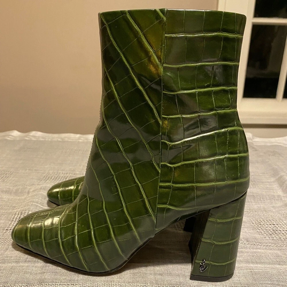 Sam Edelman Codie Croc Embossed Green Leather Heeled Ankle Bootie Size 7.5