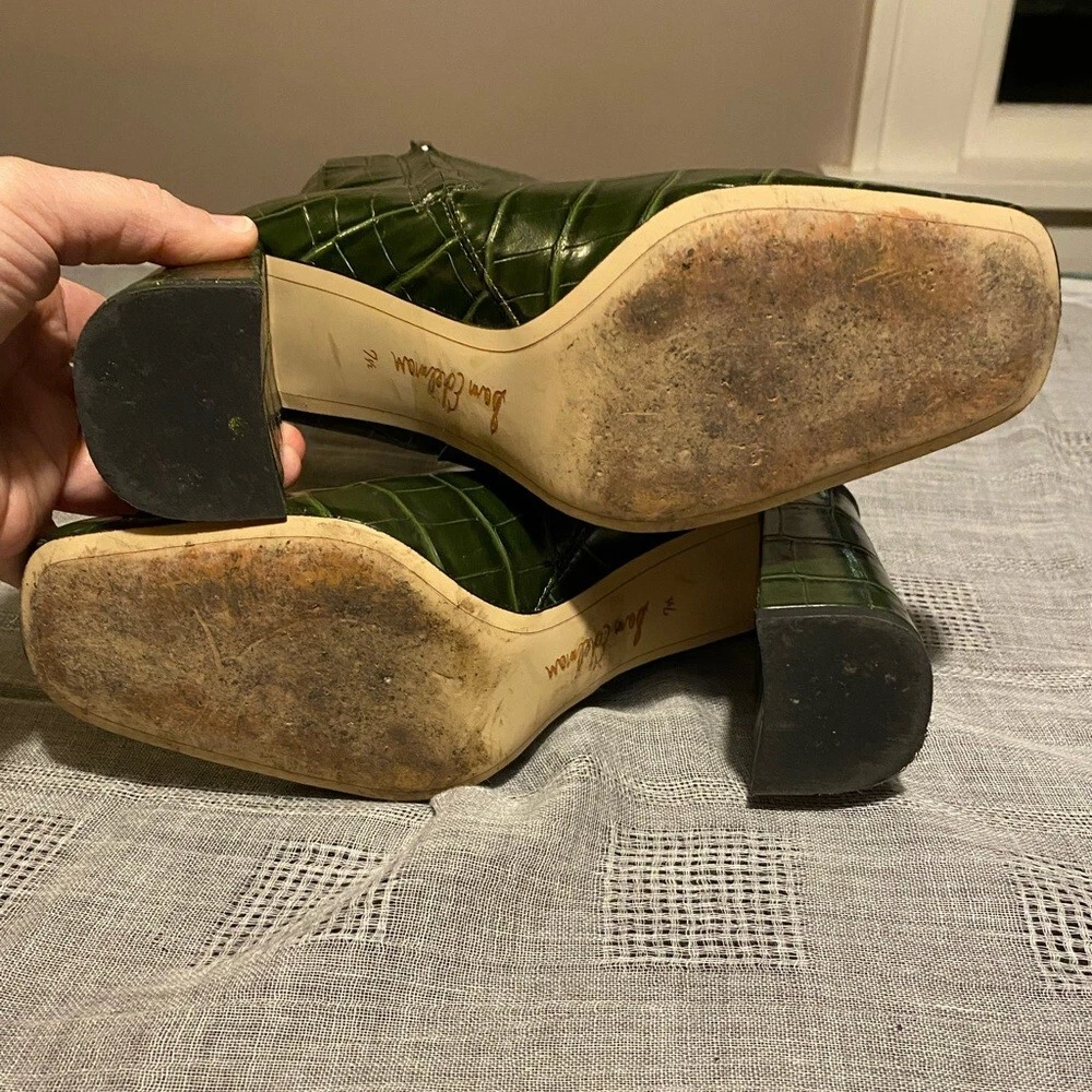 Seller Notes:“uppers are in great condition.”Style:BootieShoe Shaft Style:AnkleBrand:Sam EdelmanColor:GreenUS Shoe Size:7.5Department:WomenType:BootUpper Material:LeatherOutsole Material:Leather