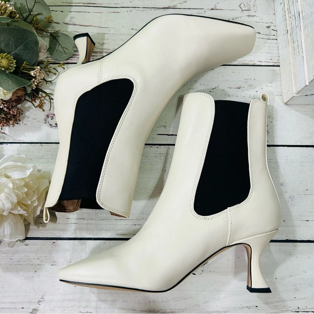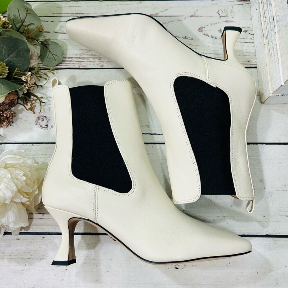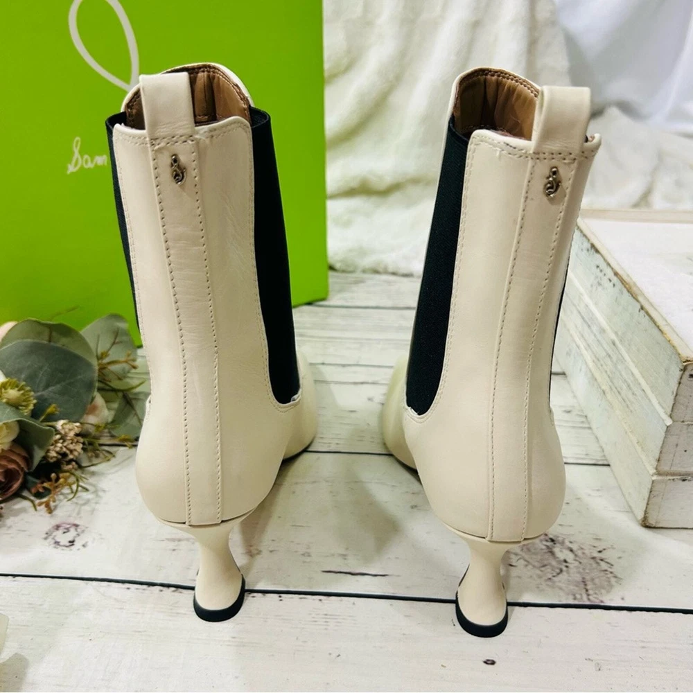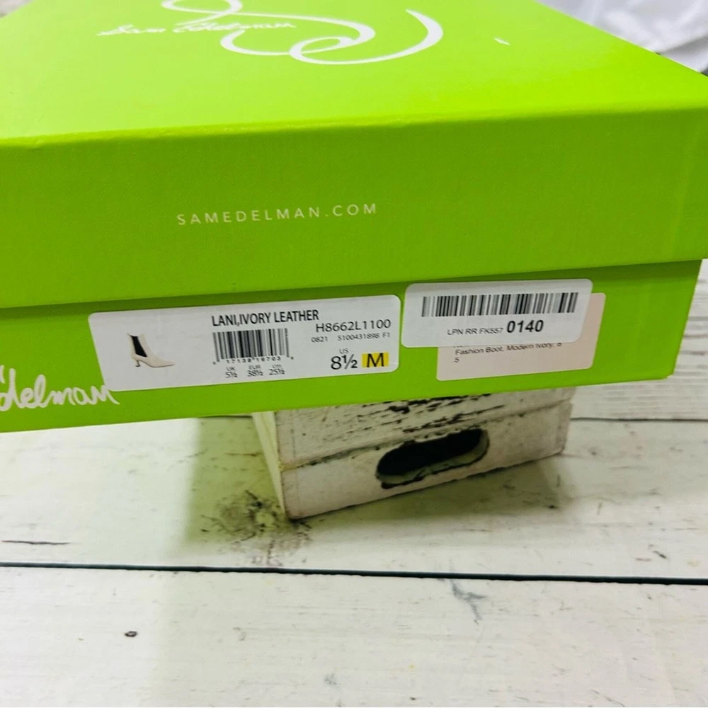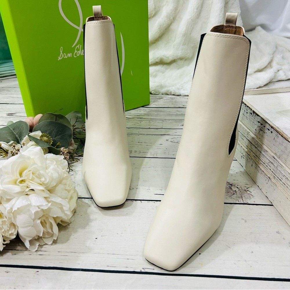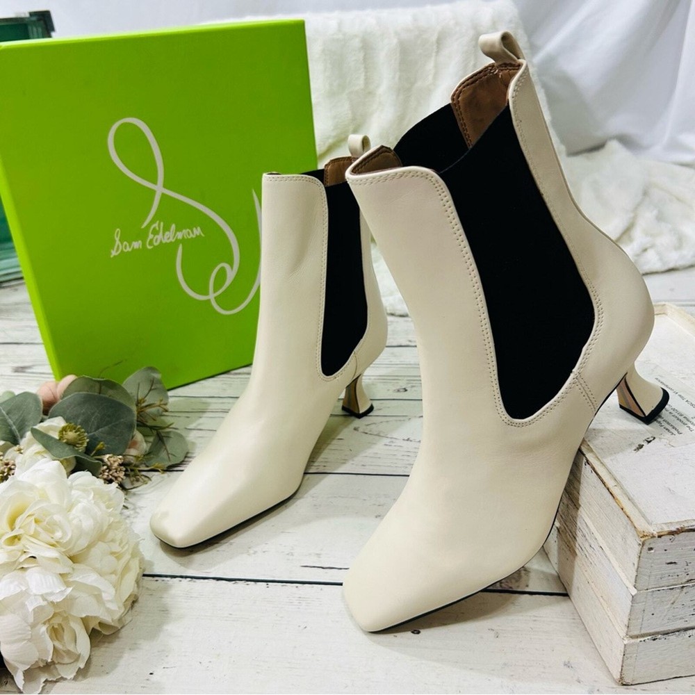 sam edelman lani leather Chelsea ankle booties NWT . Super cute. Size 8.5 . Ivory . Heel 3 inch . Brand new in box . Light price tag residue on outsole as shown in pictures. Shipped with USPS Priority Package, No returns but backed by eBay money back guarantee. If you have any other questions please contact seller . Please leave wonderful feedback once you are satisfied with the purchase, Thank you. Custom charges may apply for international purchases.