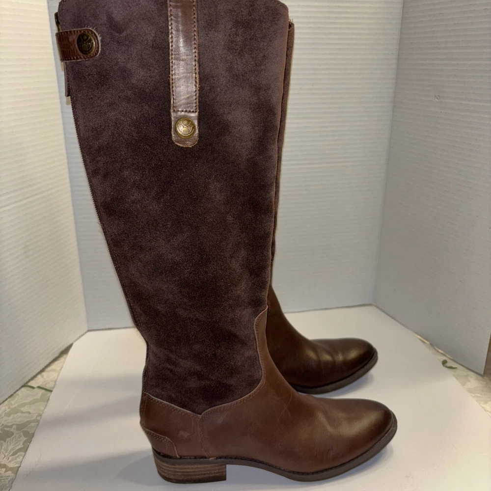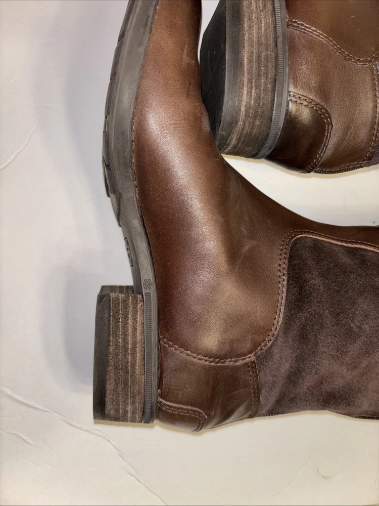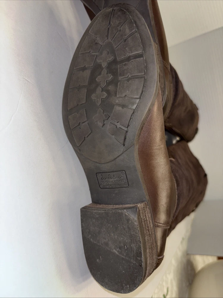 Please see pictures of wear and sizes. Left boot is 7 and right boot is 6.5