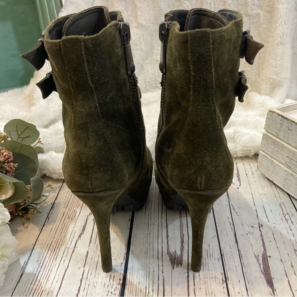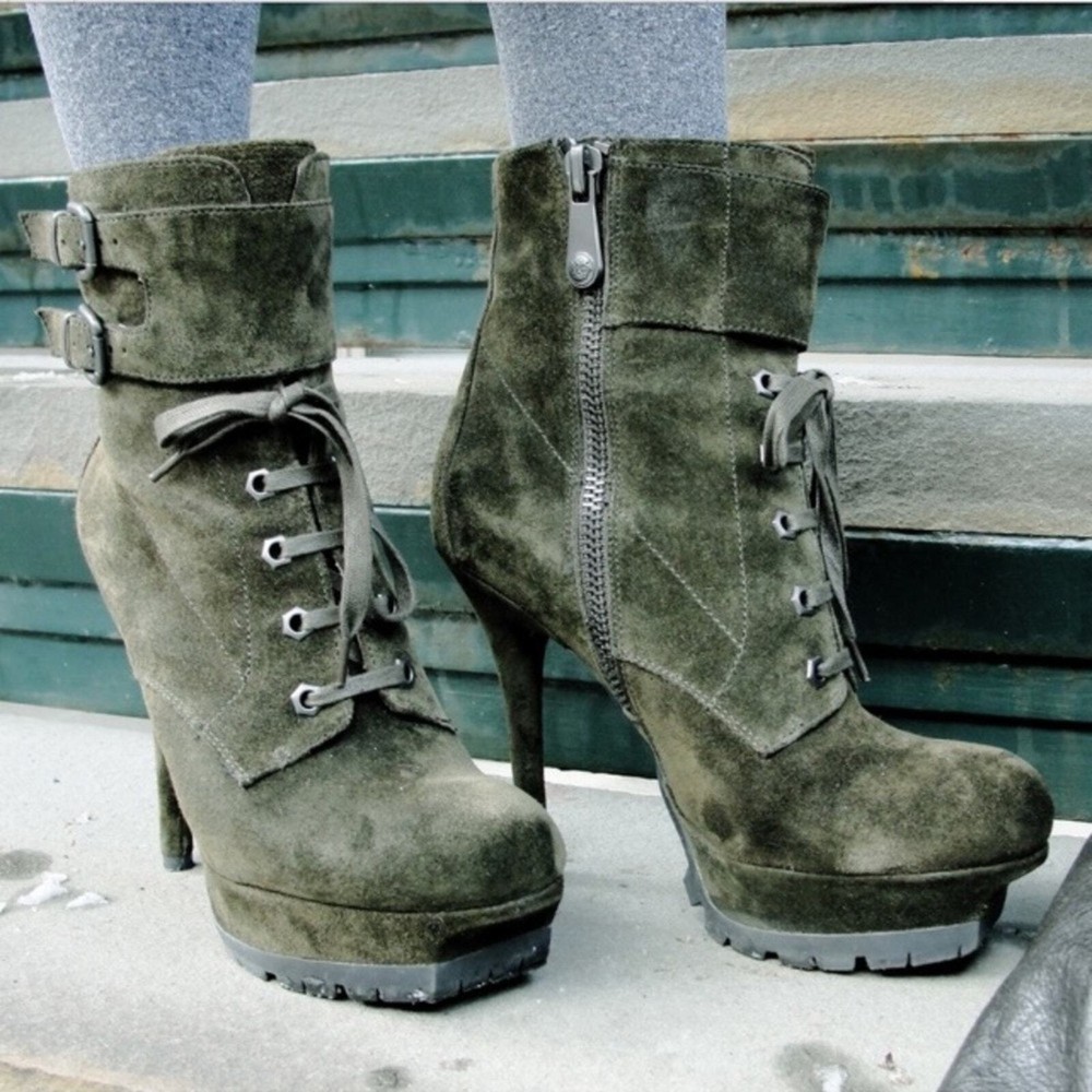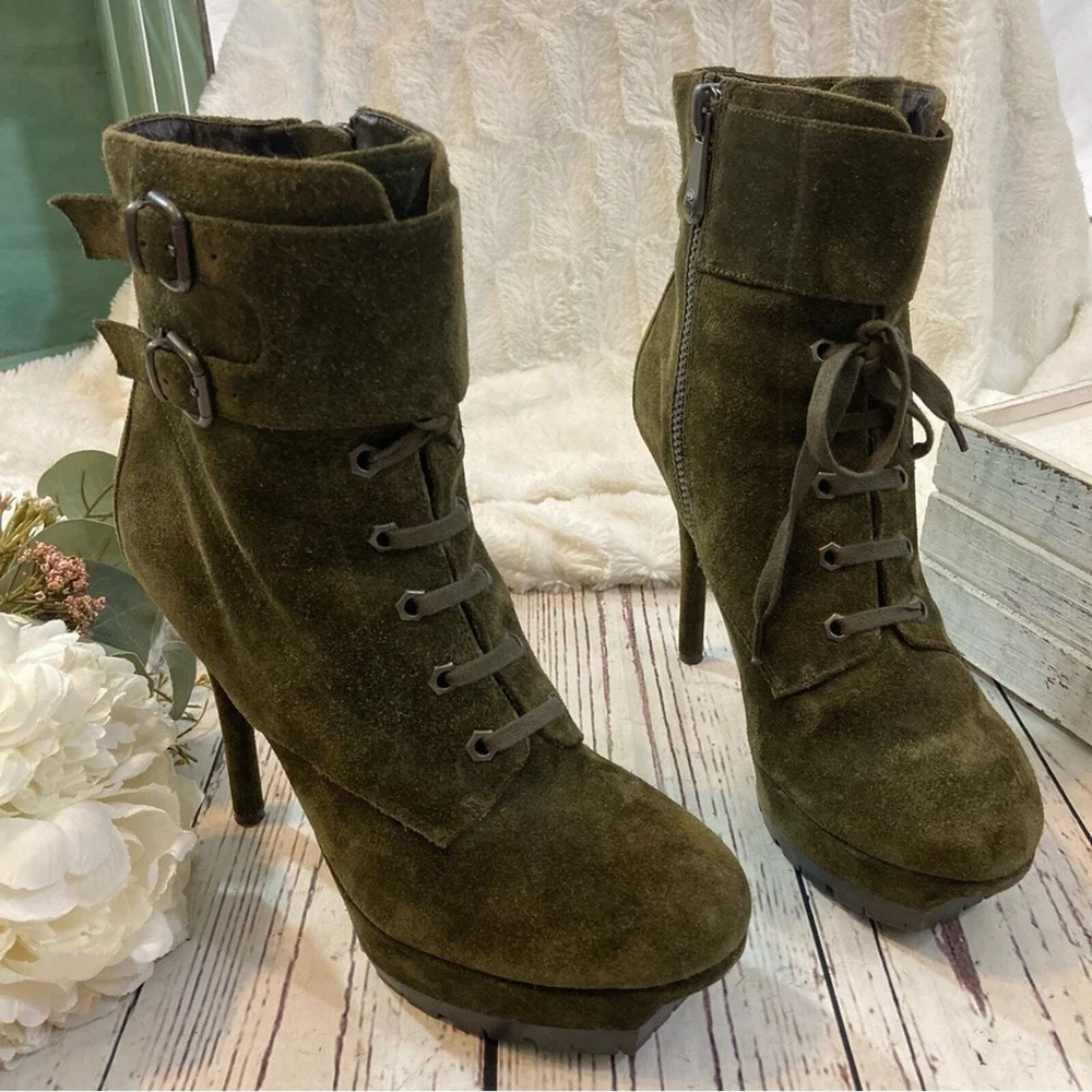 Pre loved Sam Edelman Vancouver olive lace up heeled combat boots . Suede . Super cute . Minimal wear . Size 9 . Heel 5.5 inch . Grip outsole . Non slip . Shipped with USPS Priority Package, No returns but backed by eBay money back guarantee. If you have any other questions please contact seller . Please leave wonderful feedback once you are satisfied with the purchase, Thank you. Custom charges may apply for international purchases.