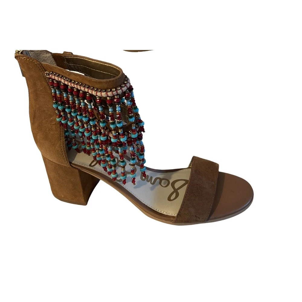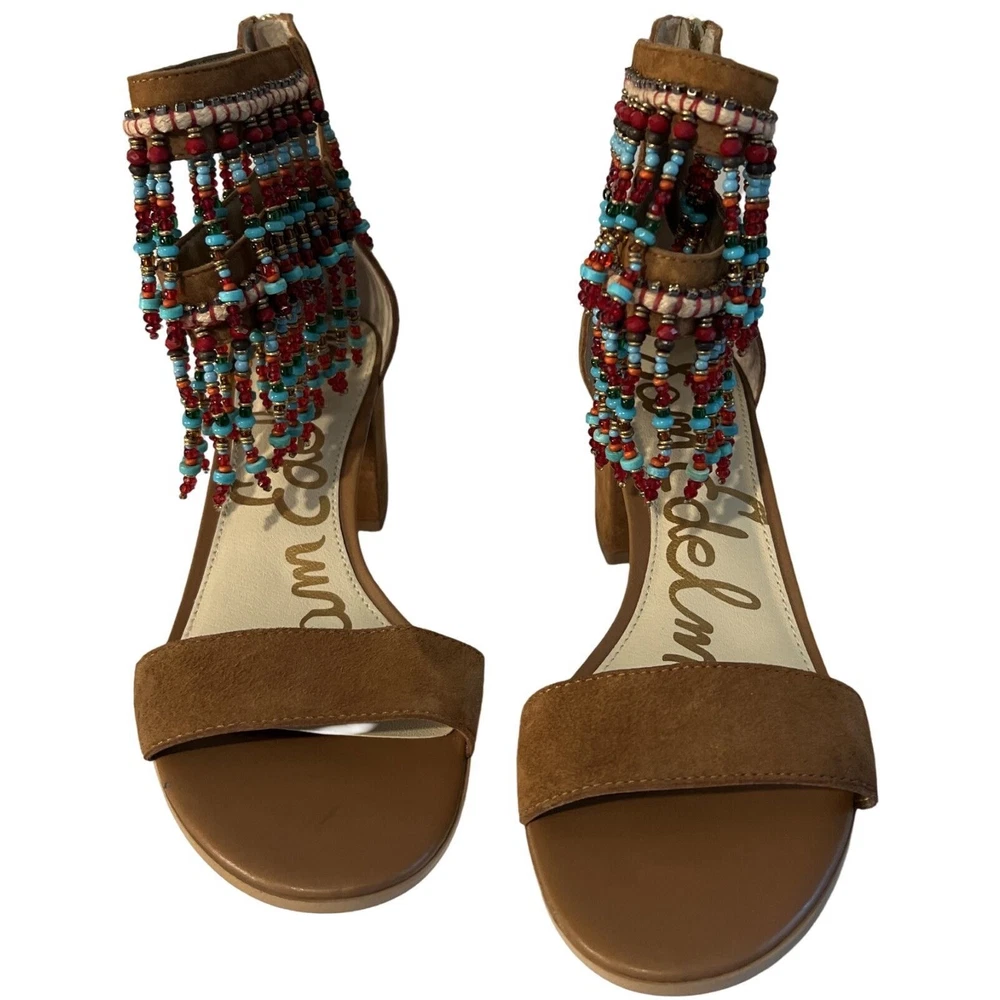 NEW WITHOUT BOX Sam Edelman Sibel sandals ** hanging beads, shades of turquoise ** zip closure ** perfect for any occasion from weddings to cocktail parties ** block heel style ** made of high-quality leather ** excellent condition, no flaws ** all items stored in a smoke-free & pet free home