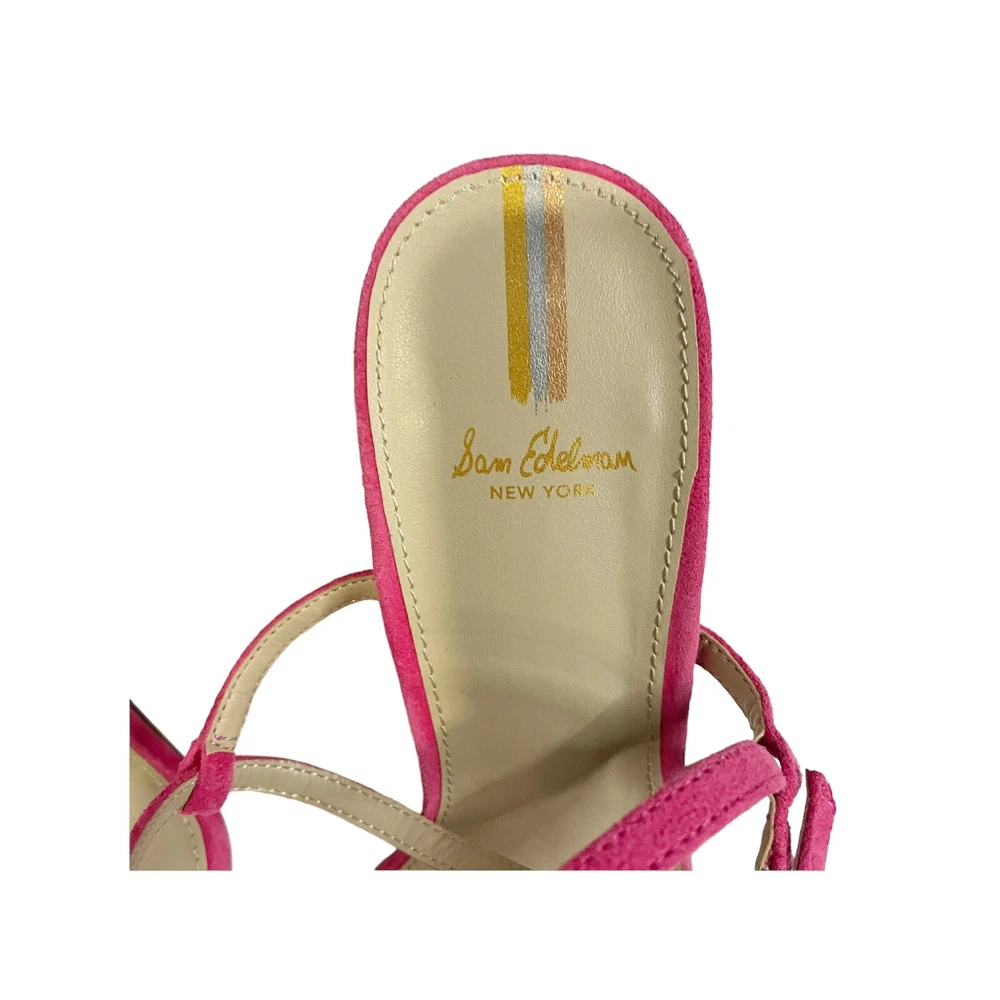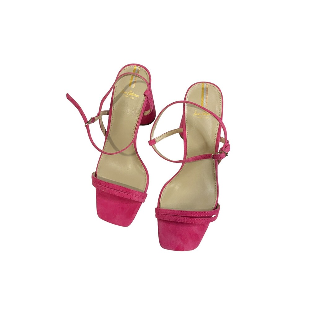Elevate your style with these beautiful pink kit block heel sandals from Sam Edelman. The slingback design and open toe style add a touch of sophistication to any outfit. The buckle closure ensures a secure fit while the high block heel provides a comfortable and stylish lift. Made with synthetic materials and a suede upper, these shoes are both durable and fashionable. The solid pattern and preppy theme make them perfect for any occasion. Available in size 9 and with a medium shoe width, these heels are sure to become a staple in any wardrobe. new without. box 4" heel height All Measurements Are Approximate Please email us with any questions! ** LIKE THE ITEM BUT NOT THE PRICE, REASONABLE OFFERS ACCEPTED
