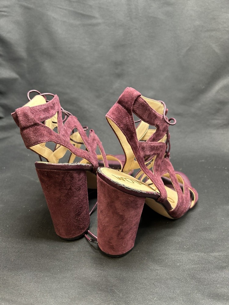 These Sam Edelman heels are a must-have for any stylish woman. The maroon faux suede strappy design is perfect for any occasion. The heels are comfortable and have a sturdy heel that is both fashionable and practical. The size 8 shoes are perfect for women who want to look and feel great. The brand is known for its quality products, and these shoes are no exception. Get ready to turn heads with these beautiful heels that will complement any outfit.