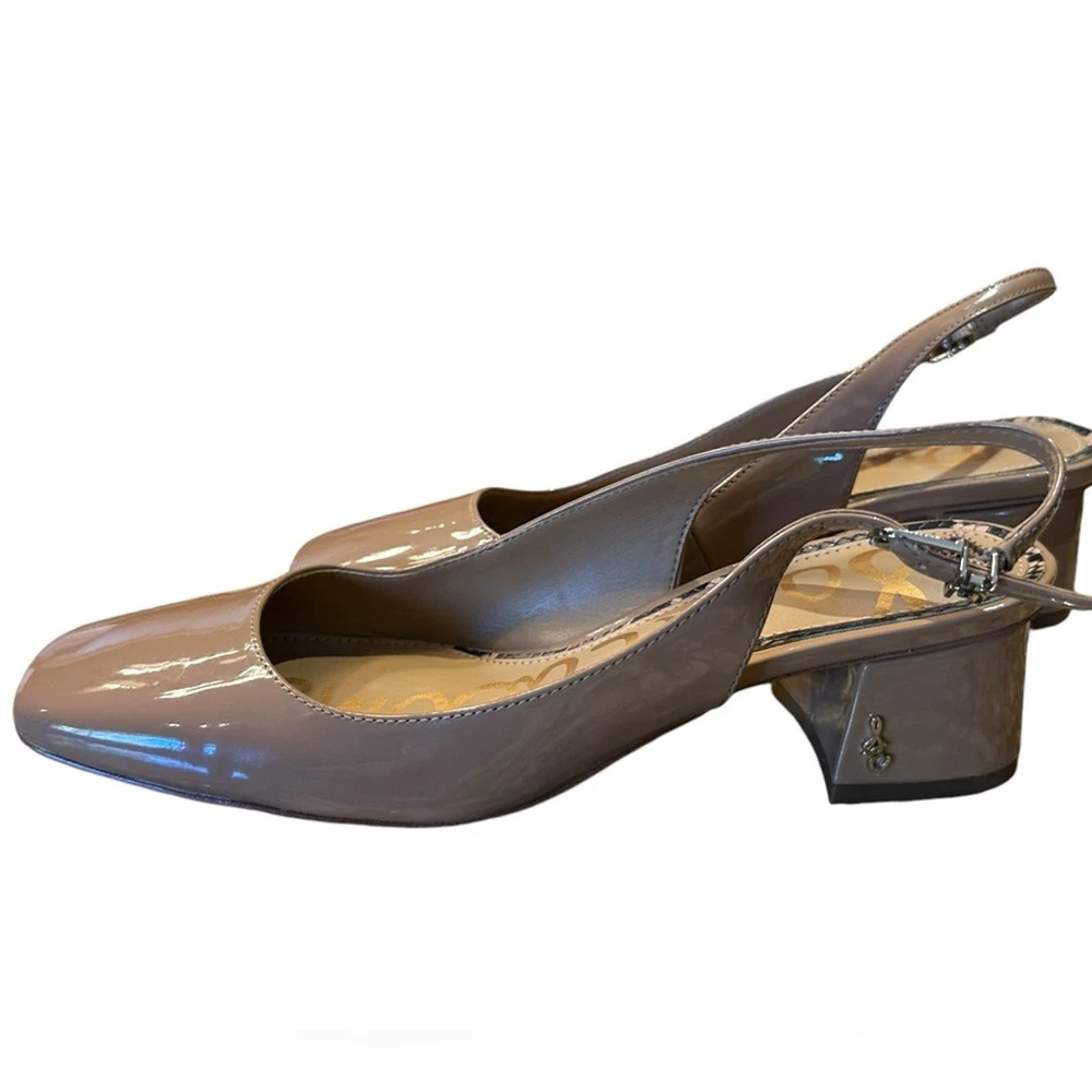 This is a gorgeous pair of chunky heel pumps by Sam Edelman. Women size 8 nude tone patent pumps are excellent gently used condition.