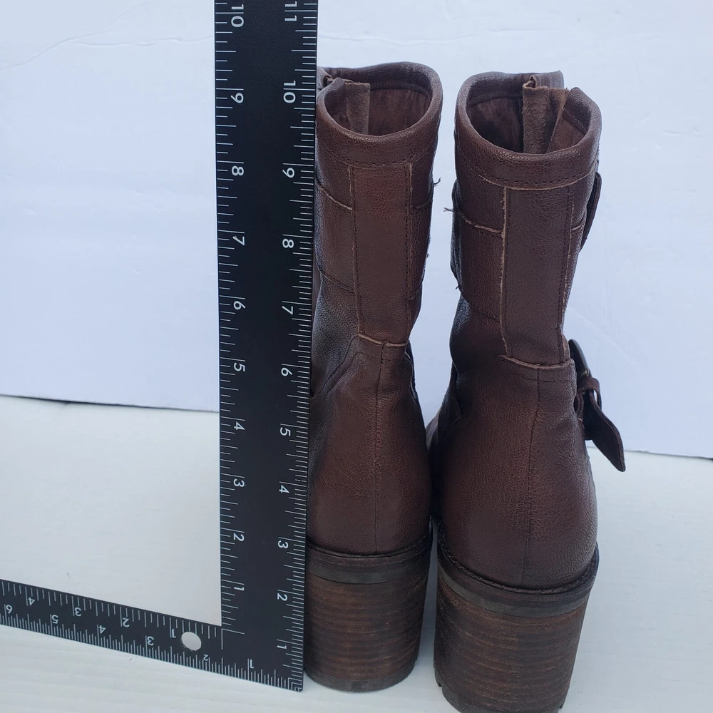 Sam Edelman Woman's Troy Brown Biker Moto Leather Block Heel Boots. Size 8.5M. Excellent Pre-owned condition. Boots show very little wear. Please see photos.