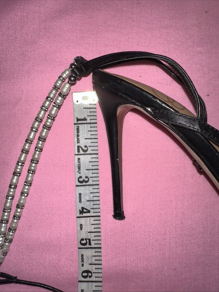 Sam Edelman stiletto strap heels black pearls size 8 1/2. Condition is Pre-owned. Shipped with USPS Ground Advantage.