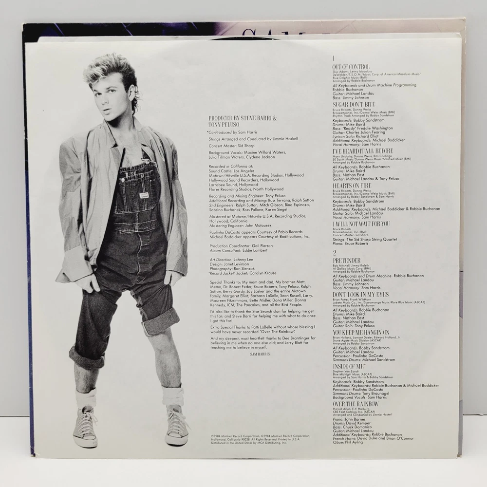 Sam Harris Self Titled LP - 1984 Motown Records - 33RPM 12" Vinyl Record has been visually inspected, and any visual imperfections are shown as best as possible in the pictures. Record needs to be clean. Please see all pictures for condition details. Please feel free to ask any questions.