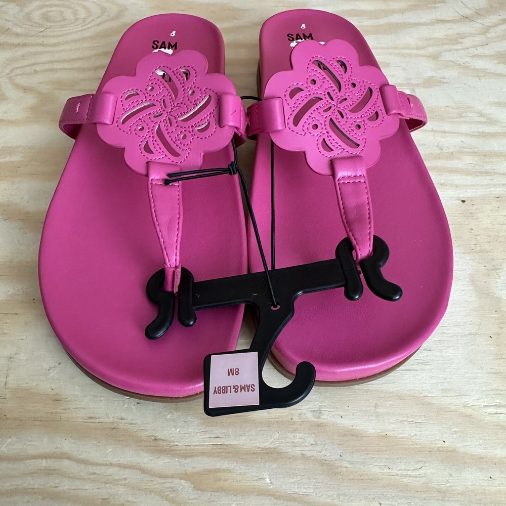 Sam & Libby Alexandra Thong Flip Flop Size 8 Pink Cushioned Walk - Small Defect In the Logo on the & White (see Photo) - Shoes Are NEW Defect Rrom Removing Sticker