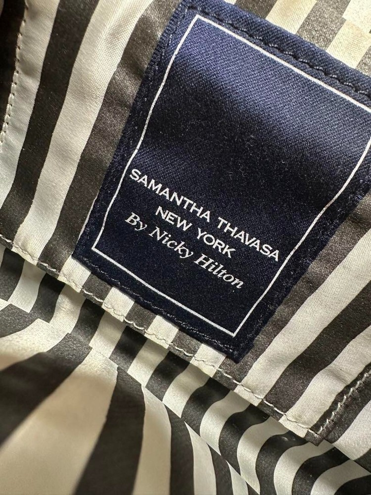 This chic Samantha Thavasa clutch is a must-have! The black exterior with striped lining adds elegance, and the compact size is perfect for nights out. Despite minor wear, it’s in excellent condition and feels authentic. Love the Nicky Hilton touch—so stylish and practical!