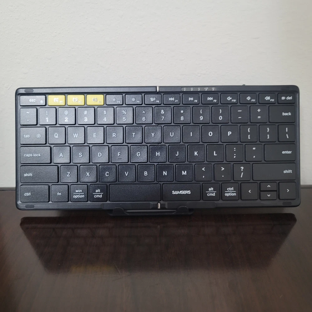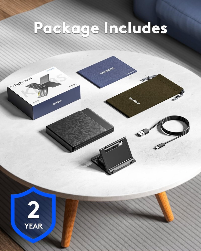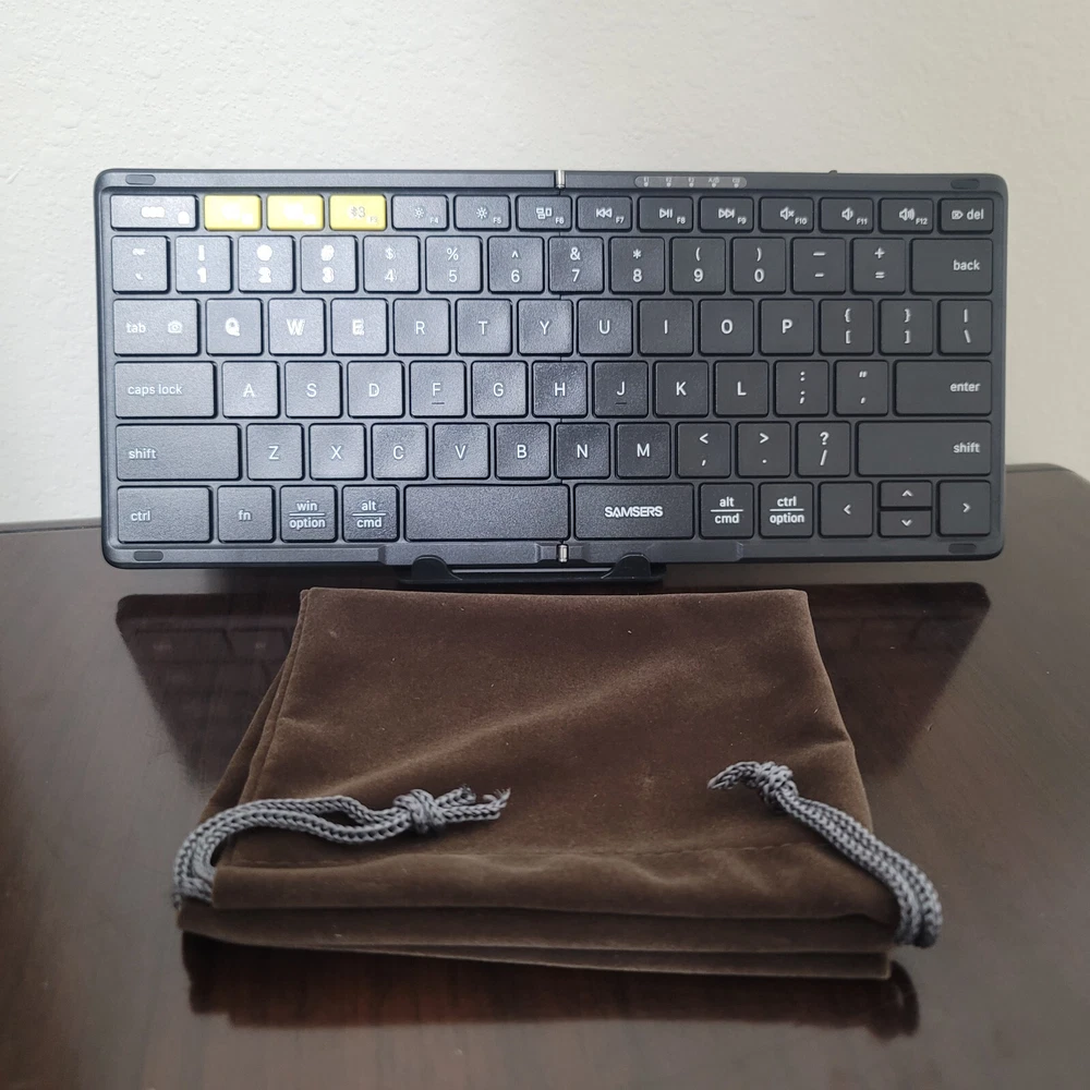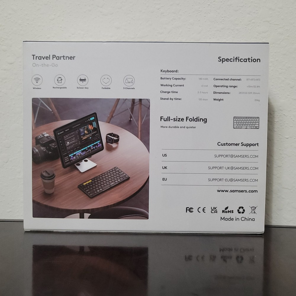 Experience the convenience of a portable typing solution with the Samsers KF08S Full-Size Foldable Bluetooth Keyboard. Crafted for those who value efficiency and space, this compact keyboard boasts a sleek black design that easily fits into any bag, making it an ideal companion for your on-the-go typing needs. Equipped with Bluetooth connectivity, this wireless keyboard offers a seamless link to your devices without the clutter of wires. The familiar QWERTY layout is designed for intuitive use, and with its English keyboard language support, it's ready for immediate use right out of the box. The Samsers KF08S is a single-unit, high-quality typing accessory that promises both reliability and a comfortable typing experience.