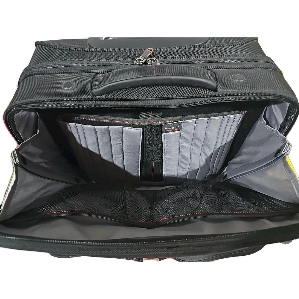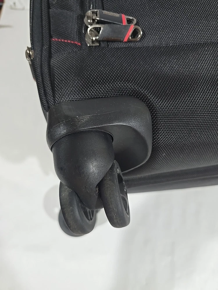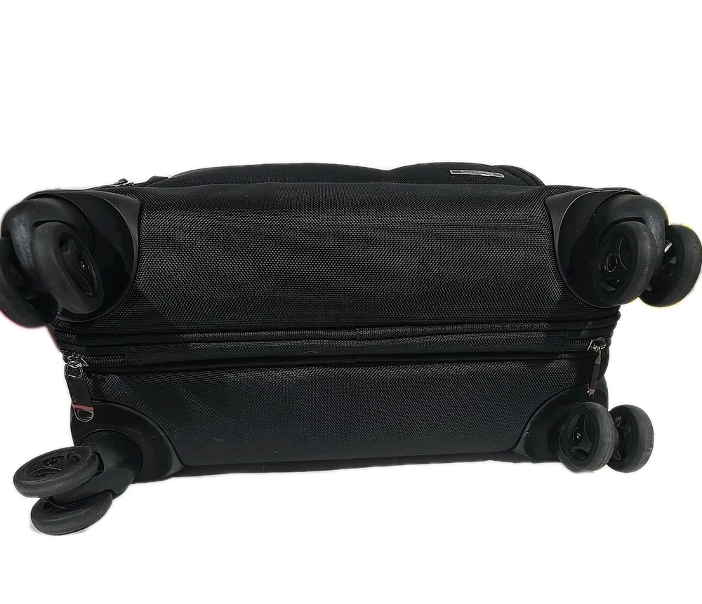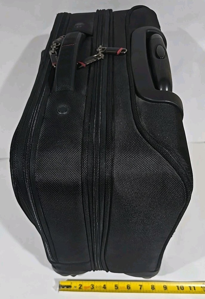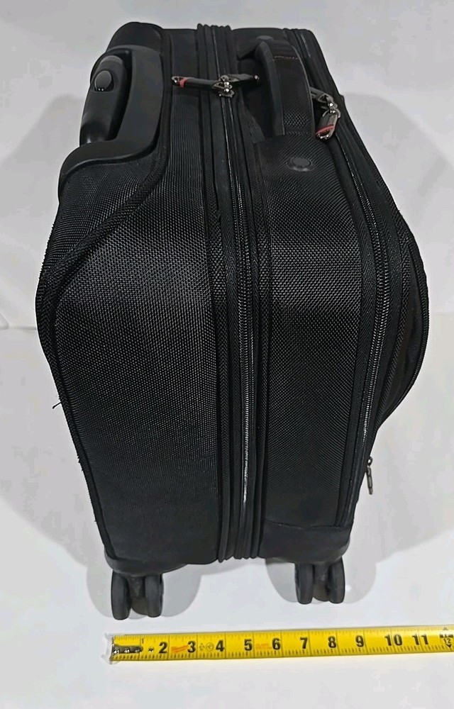 Samsonite Spinner wheel roller bag - from an estate sale, appears lightly used with minor wear. Nylon-feel material. Approximately 17.5" W x 16" H x 7.5"D 16" Laptop (diagonal screen length) fits snugly, probably designed for ~15" Laptop models. Laptop pouch width is approx 13.5" Exact item as shown in photos. Ask if additional photos or descriptions are needed. Thanks for looking!