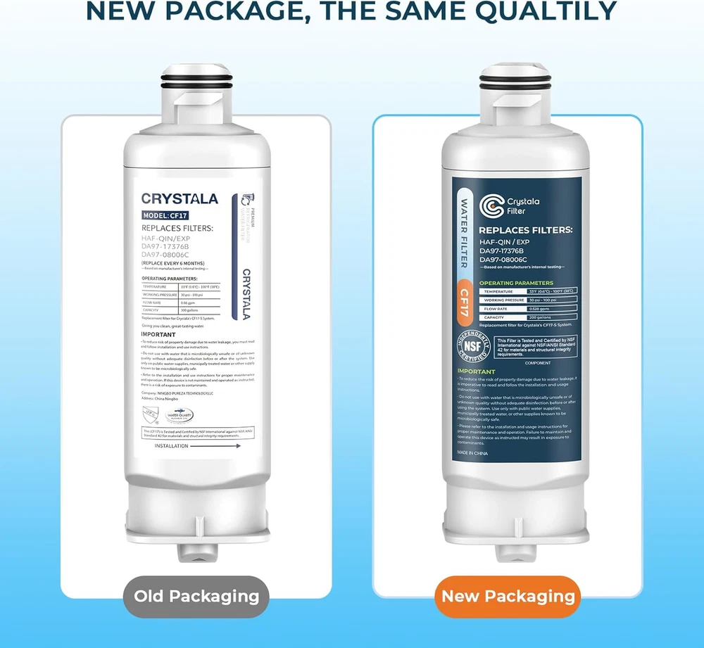 Fast Shipping Great Customer Support Satisfaction Guaranteed DESCRIPTION Shipping Shipping Shipping All domestic packages are shipped for Free (Unless other shipping method was selected during the checkout) Most items ship and arrive much sooner than the estimate delivery date. Usually within 2-3 days from payment. However, we have longer estimates to compensate for the occasional delay or supply chain breakdown. We do not accept P.O. BOXES - PLEASE PROVIDE A PHYSICAL ADDRESS Return Return Return In the event that you would like to return your purchase, we allow returns that are processed within the defined return date (the return date is to be found in the return policy/shipping and handling section) Please contact us for a return authorization and the return shipping address. Payment Payment Payment PayPal is our preferred method of payments it's the quickest, easiest and most secure way to pay for your goods or services online. PayPal offers buyer and seller protection should there be a problem. If you do not have a PayPal account, to get started and buy your first item with us is very easy. Simply click on the 'Buy It Now' button and follow the eBay checkout steps. Select PayPal as the payment method you then will be given the chance to enter your card details in to PayPal's secure checkout in order to pay for your order. Once the payment has been made, you will then be given the opportunity to make your own PayPal account to make paying for your items in the future very easy. Should there be a problem with payment please do let us know. Feedback Feedback Feedback Customer satisfaction is very important to us. If you have any problem with your order,please contact us and we will do our best to make you satisfied, please do not leave a negative feedback before we resolve your problem. We guarantee that your issue will be solved quickly. As long as you are happy with your purchase of , please leave us a positive feedback. Your feedback is very important to us it affects our search placement on eBay. We will leave a positive feedback for you in return automatically once we receive your feedback. Contact Us Contact Us Contact Us If you have any queries, please contact us via ebay. We usually respond within 24 hours on weekdays. Thank you for visiting our ebay store! Crystala Filters Replacement for DA97-17376B Refrigerator Water Filter Statement: Tested & verified by independent laboratory testing, it can remove 97.9% chlorine and improve water’s smell and taste. Compatible with HAF-QIN/EXP Water Filter Cartridge Certification: Lead-free, BPA free, uses 100% selected coconut shell carbon block from Sri Lanka. In compliance with the NSF 42 standard. Certified model “CF17”. Replacement for HAF-QIN Refrigerator Water Filter Life: 6 months or 300 gallons. Premium replacement for DA97-17376b: Retains beneficial minerals while removing impurities in water. Replacement for DA97-17376B, HAF-QIN, HAF-QIN/EXP, BRF365200AP/AA, DA97-08006C, RF23M8070SG, RF23M8070SR, RF23M8090SG, RF23M8090SR, RF23M8570SR, RF23M8590SG etc. Samsung DA97-17376B Water Filter Replacement, NSF 42, 2 Pack Click here to see description Fast Shipping Great Customer Support Satisfaction Guaranteed DESCRIPTION Shipping All domestic packages are shipped for Free (Unless other shipping method was selected during the checkout) We ship within two business days of payment, usually sooner Standard FREE shipping takes between 3-5 business days Expedited shipping takes between 2-3 business days Overnight shipping takes between 1-2 business days We do not accept P.O. BOXES - PLEASE PROVIDE A PHYSICAL ADDRESS We Ship Globally using ebay's GSP, the item is sent to a logistic center in KY and shipped from there to the rest of the world. International customers are responsible for all duties and taxes Contact your local authority for questions related to the amount of duties or taxes you will be responsible for Return In the event that you would like to return your purchase, we allow returns that are processed within the defined return date (the return date is to be found in the return policy/shipping and handling section) Please contact us for a return authorization and the return shipping address. Please contact us for a Return Merchandise Authorization (RMA) number. We advise you to use a reputable carrier service when returning your goods. Please pack all returns appropriately. We ship globally Via eBay's global shipping program (GSP). Thus we don't cover returns for items shipped globally. Buyers returning such items will be refunded ONLY for the item's cost and not for the shipping. please check the Voltage information and make sure it matches the one in your country. In case it's not stated in the description, do ask us. Payment PayPal is our preferred method of payments it's the quickest, easiest and most secure way to pay for your goods or services online. PayPal offers buyer and seller protection should there be a problem. If you do not have a PayPal account, to get started and buy your first item with us is very easy. Simply click on the 'Buy It Now' button and follow the eBay checkout steps. Select PayPal as the payment method you then will be given the chance to enter your card details in to PayPal's secure checkout in order to pay for your order. Once the payment has been made, you will then be given the opportunity to make your own PayPal account to make paying for your items in the future very easy. Should there be a problem with payment please do let us know. Feedback Customer satisfaction is very important to us. If you have any problem with your order,please contact us and we will do our best to make you satisfied, please do not leave a negative feedback before we resolve your problem. We guarantee that your issue will be solved quickly. As long as you are happy with your purchase of , please leave us a positive feedback. Your feedback is very important to us it affects our search placement on eBay. We will leave a 