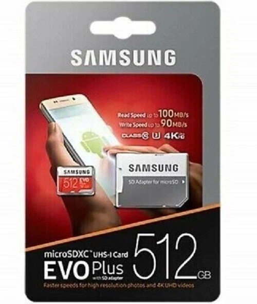 Samsung EVO Plus 256GB 512GB 1TB Micro SD MicroSDXC 4K C10 UHS-I U3 Memory Card Choose Capacity Above Comes with SD adapter Speeds up to 100MB/s Water, Shock, Dust, Magnetic, X-ray, and Temperature Resistant Samsung Warranty Each is brand new in Retail Package Ships within 1 business day USPS Ground Advantage with tracking