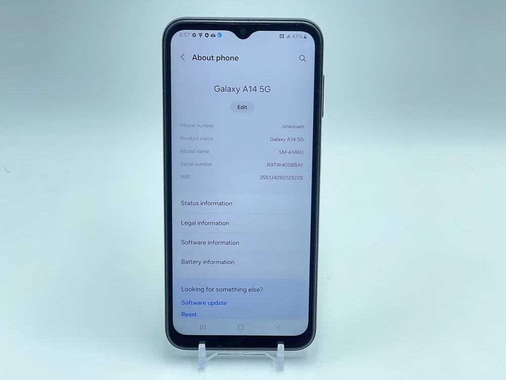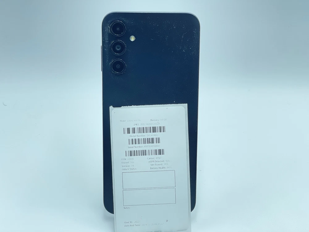 PAYMENT - Payment is due when item is ended. If payment is not received within 4 DAYS , the order will be automatically cancelled resulting in a strike on buyer's account. Buyers with 2 or more unpaid items will no longer be able to make offers or purchases from Warehouse Wireless. RETURNS - Returns are accepted within 60 days of purchase. We do not offer replacements or partial refunds. Original purchase price will be refunded after receipt of return. SHIPPING - USPS requires all electronics with lithium batteries be shipped using Parcel Select. Shipping times vary depending on location and are estimates only. Unfortunately, we are unable to offer USPS Priority, USPS Express, or FedEx Express shipping options. Samsung Galaxy A14 5G 64GB SM-A146U (AT&T) Black Firmware: Android 14.0 - UP1A.231005.007.A146USQS8DXG1 THE PHOTOS ABOVE ARE REPRESENTATIVE OF THE DEVICE, NOT OF THE ACTUAL DEVICE. This item does not include a charger or any other accessories CARRIER - AT&T IMEI/ESN - 355134282129228 Device is CLEAR FOR ACTIVATION - Please contact us right away if you do experience any problems with activation. DESCRIPTION - This item is in FAIR cosmetic condition. It reflects MODERATE to HEAVY USE and has MANY scratches and/or blemishes. Functional Condition Test Results: Passed Accelerometer Bluetooth Device Lock Digitizer Earpiece Flashlight Front Camera Front Camera Quality Glass Condition Gyroscope Headset Port Headset-Left Headset-Right LCD Loud Speaker M-Network Connectivity M-Sim Reader Test Microphone Power Button Proximity Sensor Rear Camera Rear Camera Quality Screen Rotation Telephoto Camera Telephoto Camera Quality UltraWide Camera UltraWide Camera Quality Vibration Video Microphone Volume Down Button Volume Up Button WiFi+GPS