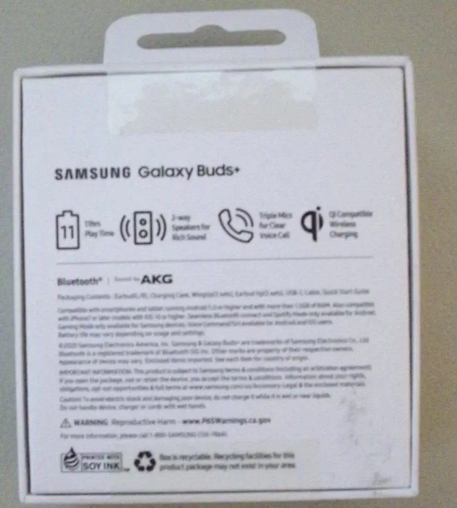 Experience the ultimate freedom with the Samsung Galaxy Buds+ (Plus) True Wireless Bluetooth Headphones in Purple. These earbuds are perfect for anyone who wants to enjoy high-quality audio without the hassle of wires. With Bluetooth technology and a built-in microphone, these earbuds allow you to take calls and stay connected on the go. The Samsung Galaxy Buds+ (Plus) True Wireless Bluetooth Headphones in Purple are designed for comfort and come with a rechargeable battery. These earbuds also feature active noise cancellation, noise isolation, ambient sound mode, extra bass, and a built-in on/off switch. With USB connectivity and wireless charging, these earbuds are the perfect accessory for anyone who wants to enjoy the ultimate audio experience.