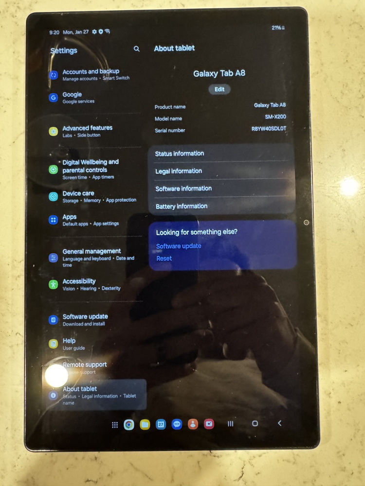 Barely used. Only tablet. No charger or box included. It will be fully charged. The Samsung Galaxy Tab A8 SM-X200 in Pink Gold is a sleek and powerful tablet with a 10.5-inch TFT display and a maximum resolution of 1920 x 1200. Running on an Octa Core processor with a speed of 2.00 GHz, this tablet offers smooth performance and multitasking capabilities. With 4GB of RAM, 64GB of storage capacity, and a battery capacity of 5000-7999 mAh, this tablet provides ample space for storing files, apps, and media. It also features Wi-Fi internet connectivity, Bluetooth, and USB 2.0 for easy connectivity options. The device operates on the Android operating system and includes features like an accelerometer and G-sensor for added functionality.