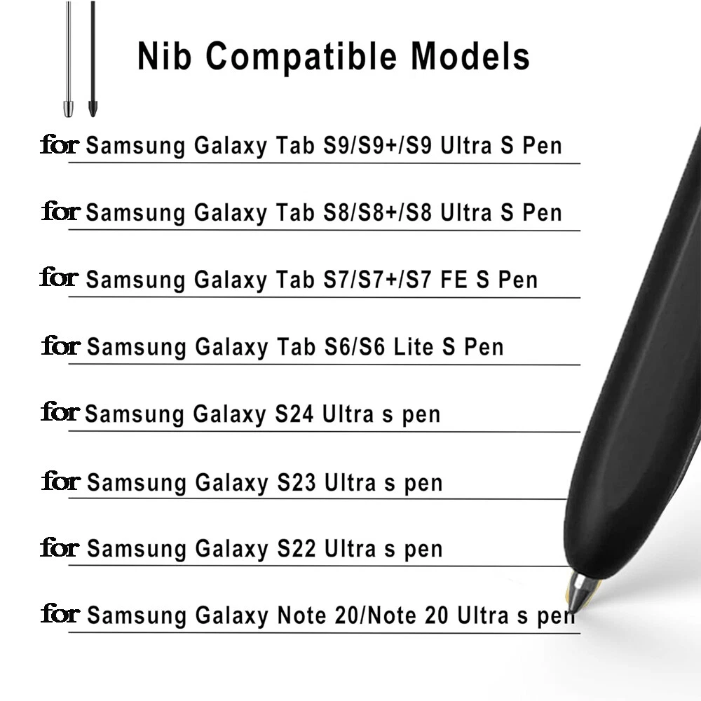 Metal Nibs/Tips Replacement for Samsung Galaxy Tab S9/S9FE+/S9 Ultra/S8/S8+/S8 Ultra/S7/S7 FE/S6/S6 Lite/S22/S23/S24 Ultra S Pen,Plastic + Titanium Nibs/Tips+Clip (2+10 pcs Set) Material Metal, Acrylonitrile Butadiene Styrene (ABS) Compatible Devices Samsung Galaxy Tab S9, Samsung Galaxy Tab S8, Samsung Galaxy Tab S9fe+, Samsung Galaxy Tab S9 Ultra, Samsung Galaxy Tab S8+Samsung Galaxy Tab S9, Samsung Galaxy Tab S8, Samsung Galaxy Tab S9fe+, Samsung Galaxy Tab S9 Ultra, Samsung Galaxy Tab S8+ About this item Replacement Nibs/Tips: Compatible with for Samsung Galaxy Tab S9/S9FE+/S9 Ultra/S8/S8+/S8 Ultra/S7/S7 FE/S6/S6 Lite/S22/S23/S24 Ultra S Pens. Durable Materials: Includes 10 plastic nibs and 2 titanium nibs for long-lasting performance. Easy Installation: Comes with a convenient clip for hassle-free nib replacement. Precise Writing: Smooth and precise writing experience on your for Samsung tablet's screen. Versatile Compatibility: Universal design ensures compatibility with various for Samsung Galaxy Tab models.