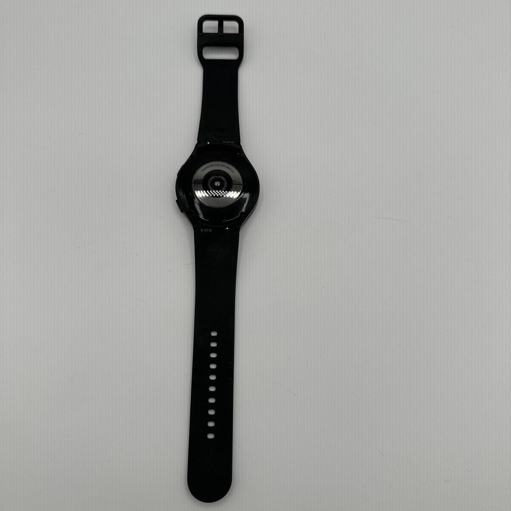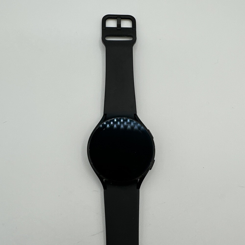 The Samsung Galaxy Watch 4 is a smartwatch with a 44mm black aluminum case and black silicone band. It features GPS, Wi-Fi, Bluetooth, and NFC connectivity, and is compatible with Android operating systems. The watch is in good working condition and has been tested to ensure it is fully functional. G1