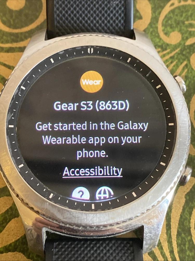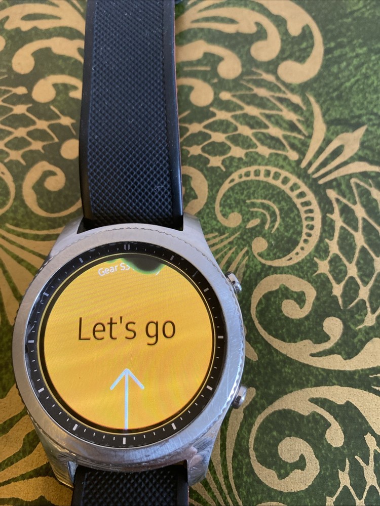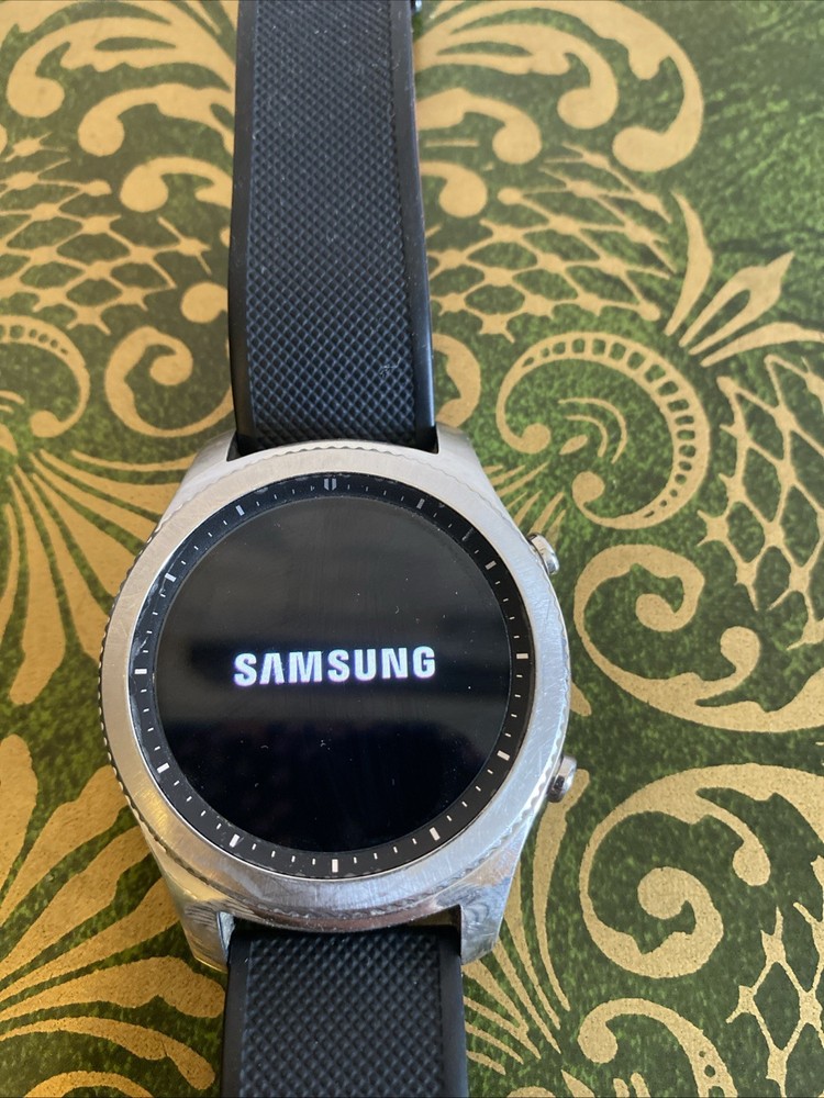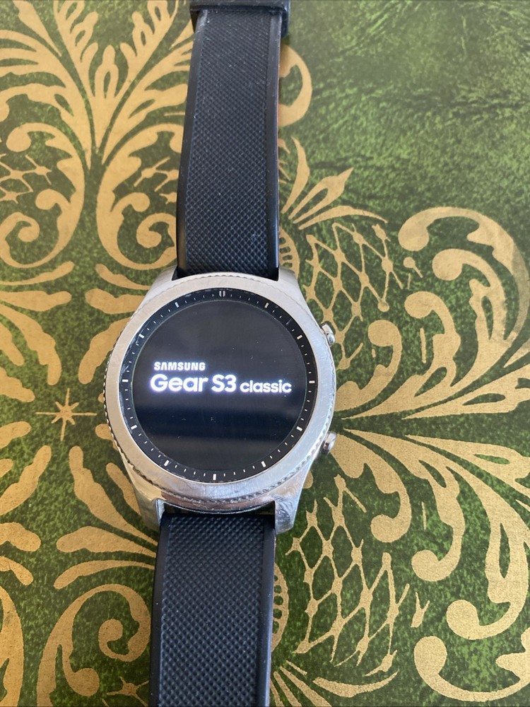 Discover the seamless blend of style and functionality with the Samsung Gear S3 Classic. Designed to complement your Android devices, this smartwatch boasts a sleek 46 mm stainless steel case and band, offering durability and a touch of sophistication to your daily routine. With the Samsung Gear S3 Classic, you can enjoy a suite of features right from your wrist. Whether you're in the office or on the go, this watch keeps you connected and in control with notifications, fitness tracking, and more, all with the intuitive touch interface that Samsung users have come to expect. There is a dead spot in the set up screen. Does not affect touch use, watch works as it should. Once set up by the user the dead spot is not noticeable