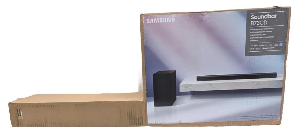 Samsung HW-B73CD 5.1 Channel B-Series Soundbar w/Wireless Subwoofer Used like new. This soundboard was display in stores so basically never used in a real world. Box has some damage but no visible sings of wear no visible scratches or other damage. This Samsung soundbar is a great addition to your home audio system. With its 5.1 channel configuration and DTS surround sound formats, you can enjoy a high-quality audio experience. The soundbar is compatible with universal brands and has a sleek black color that matches well with any home entertainment setup. The Samsung HW-B73CD soundbar comes with a wireless subwoofer and features Bluetooth, remote control, and WiFi connectivity. It has audio inputs from USB and HDMI, making it easy to connect to your TV or other devices. The soundbar is 40.5 inches long, 4.1 inches wide, and 2.3 inches high, with an item weight of 18LBS. With its rectangular shape and model number HW-B73CD, this soundbar is a must-have for any home audio enthusiast. · · · SHIPPING · · · Get free shipping on your order! We ship via reliable carriers like UPS, FedEx, and USPS We ship to the continental US (excluding PO boxes and APO/FPO addresses) Orders are usually shipped within 3 days or less. Items valued at $50 or more are subject to signature request. High value/special items are recorded with images by their unique serial number. Tracking number is sent personally to each customer. · · · RETURNS · · · Returns are accepted within 7 days of purchase Items must be in original condition and packaging- NO EXCEPTIONS · · · PAYMENTS · · · We accept all payment methods through eBay's payment system Please pay promptly after winning an auction so we can ship your item faster · · · FEEDBACK · · · Customer satisfaction is a top priority for us. If you have any issues with your order, please let us know. We will make every effort to resolve any problems and ensure you are satisfied. · · · Contact US · · · We appreciate your business. If you have any questions, please message us through eBay and we will respond within 24 hours on weekdays. Feel free to browse our eBay store for other available items. Thank you again for choosing to shop with us! · · · Suggested Products · · · Sony HT-A5000 5.1.2ch Dolby Atmos Sound Bar- New - Free Shipping $390.00 Sony HT-SC40 2.1 Channel Soundbar Wireless Subwoofer, Dolby Audio, Home Theater $99.00 Sony Network Speaker SA-NS300 New in Open Box $29.99 Razer Kaira Wireless Gaming Headset for Xbox Series X/S Black/Green NEW Sealed $69.00 Hasbro Star Wars The Black Series Darth Revan Force FX Elite Lightsaber $100.00 Banpresto Dragon Ball Super Super Hero Dxf Son Gohan Beast - Damage Box $28.00 Add suggested items to your listings - Check it out on 3Dsellers.com eBay listing template by 3D sellers.com - Try for Free!