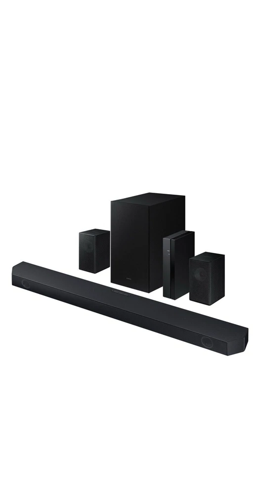 SAMSUNG Q-series 5.1 Channel Sound Bar with Wireless Subwoofer, Q-Symphony & Dolby ATMOS Audio | Model # HW-Q65C/ZA Experience Unmatched Audio Quality Get ready to immerse yourself in the ultimate audio experience with the Q65C sound bar. This audio all-star uses Q-Symphony technology to harmonize with your Samsung TV speakers, delivering an extraordinary sound performance that will elevate your entertainment experience. Be it movies, music, or gaming, the sound bar's superior audio quality will ensure you don't miss a beat. 5.1ch Dolby Atmos Sound The Q65C sound bar is equipped with 5.1ch Dolby Atmos sound, a technology that provides a three-dimensional audio experience. With this feature, you can enjoy a cinematic sound that is rich, detailed, and engrossing. Every sound element is heard as intended, providing a listening experience that is as close to reality as it gets. Adaptive Sound Lite With Adaptive Sound Lite, the Q65C sound bar enhances the clarity and detail of dialogue and vocals in your favorite content. This feature intelligently adjusts sound settings according to what you're watching, ensuring optimal audio performance at all times. Whether you're watching an action-packed movie or a dialogue-heavy drama, you'll hear every word with crystal clear precision.
