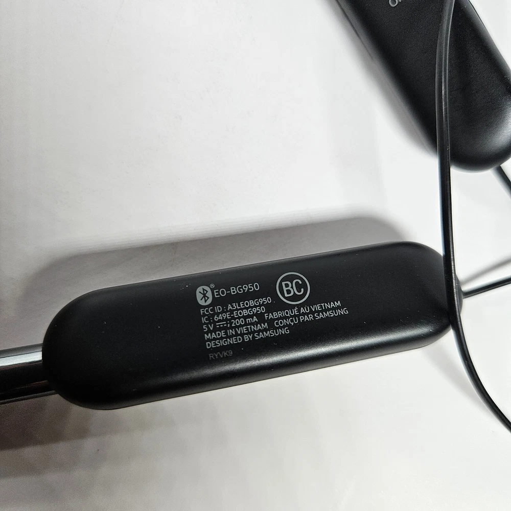 Brand:SamsungModel:EO-BG950MPN:EO-BG950Connectivity:BluetoothType:HeadsetWireless Technology:Bluetoothgtin13:Does not applyEarpiece:DoubleFeatures:WirelessFit Design:NeckbandMicrophone Type:Built-InCountry/Region of Manufacture:VietnamForm Factor:NeckbandUPC:Does not applyEarpiece Design:Earbud (In Ear)Color:BlackNumber of Earpieces:Double