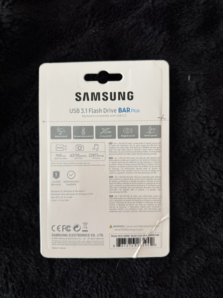 The Samsung USB 3.1 Flash Drive Bar Plus 256GB in TITAN Gray is a high-speed data storage device that is compatible with laptops. With a storage capacity of 256GB, this USB flash drive offers fast data transfer rates of up to 300MB/s. The sleek gray design and reliable Samsung brand make it a convenient and stylish option for storing and accessing files on-the-go. Perfect for those in need of a compact and efficient storage solution, this USB 3.1 flash drive is a practical choice for everyday use.