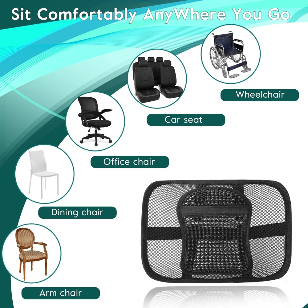 SAMYOUNG Mesh Lumbar Back Support cares enough to spend a grand on your spine! Why Is Choosing a Good Back Support Important? The average office worker spends 1920 hours sitting at work every year. This can lead to back pain, muscle tightness and inflexibility. This lumbar support promotes the maintenance of good posture, by keeping the natural curved shape of your lumbar spine, which will easing the tension and pain caused by sitting all day long, less painful and more productive. FEATURE: Adjustable straps allow you to set your comfort and support needs. Durable open-weave soft mesh cover allows to 'breathe'. Help to support the lumbar curve of your lower back to relieve back pain. Compensates for poor seating - less stress on your back, less fatigue. PRODUCT SPECIFICATIONS: Material: PP, Silicon resin, elastic rubber Size: 15.7โ x 12.2โ x 3.1โ Color: Black Weight: 9.9 Ounces ๐จ๐ฝ๐ด๐ฟ๐ฎ๐ฑ๐ฒ๐ฑ ๐๐๐บ๐ฏ๐ฎ๐ฟ ๐ฆ๐๐ฝ๐ฝ๐ผ๐ฟ๐ -- The upgrade Samyoung mesh lumbar back support added 2 adjustable vertical straps where you can easily decrease or increase the bend of the frame, provides stronger support to fit your lumbar better also keep the back support in place. ๐๐๐บ๐ฏ๐ฎ๐ฟ ๐ฆ๐๐ฝ๐ฝ๐ผ๐ฟ๐ ๐ฅ๐ฒ๐น๐ฎ๐ ๐ฒ๐ ๐ฌ๐ผ๐๐ฟ ๐๐ฎ๐ฐ๐ธ -- The breathable mesh back support with an ergonomic adjustable tension straps, it provides the gentle reinforcement help for correcting your sitting posture, relaxing your back and lumbar spine. ๐๐ฟ๐ด๐ผ๐ป๐ผ๐บ๐ถ๐ฐ ๐๐ต๐ฎ๐ถ๐ฟ ๐๐๐๐ต๐ถ๐ผ๐ป๐ -- Samyoung upgrade lumbar support can fit your lumbar better with adjustable high elastic bands, it can help you correct your sitting posture and support your lumbar effectively, relieve the discomfort caused by sitting or driving for a long time. ๐๐ฟ๐ฒ๐ฎ๐๐ต๐ฎ๐ฏ๐น๐ฒ ๐ ๐ฒ๐๐ต ๐๐ผ๐ป๐๐๐ฟ๐๐ฐ๐๐ถ๐ผ๐ป -- Made of double-layer mesh fabric that keeps your back and waist cool and breathable. Furthermore, mesh lumbar back support has many beads can massage you back muscle for relaxing. ๐๐ถ๐ ๐ข๐ป ๐ ๐ผ๐๐ ๐ฆ๐ฒ๐ฎ๐ -- The lumbar support can fit perfectly for any seats with high elastic bands, easy to take and removable. Our mesh lumbar support can be used on office chairs, arm chairs, sofas, car seats or any chair with a backrest.