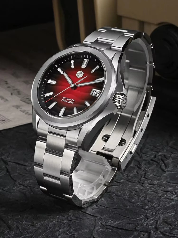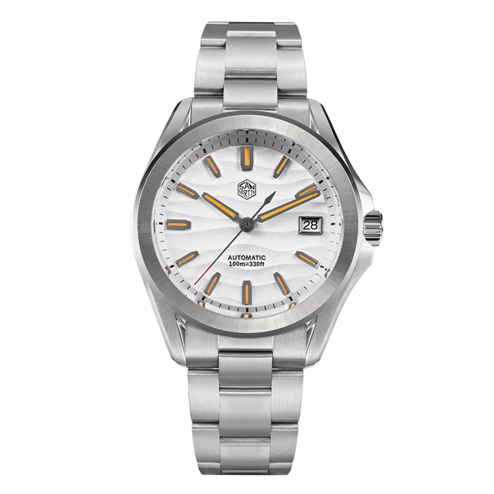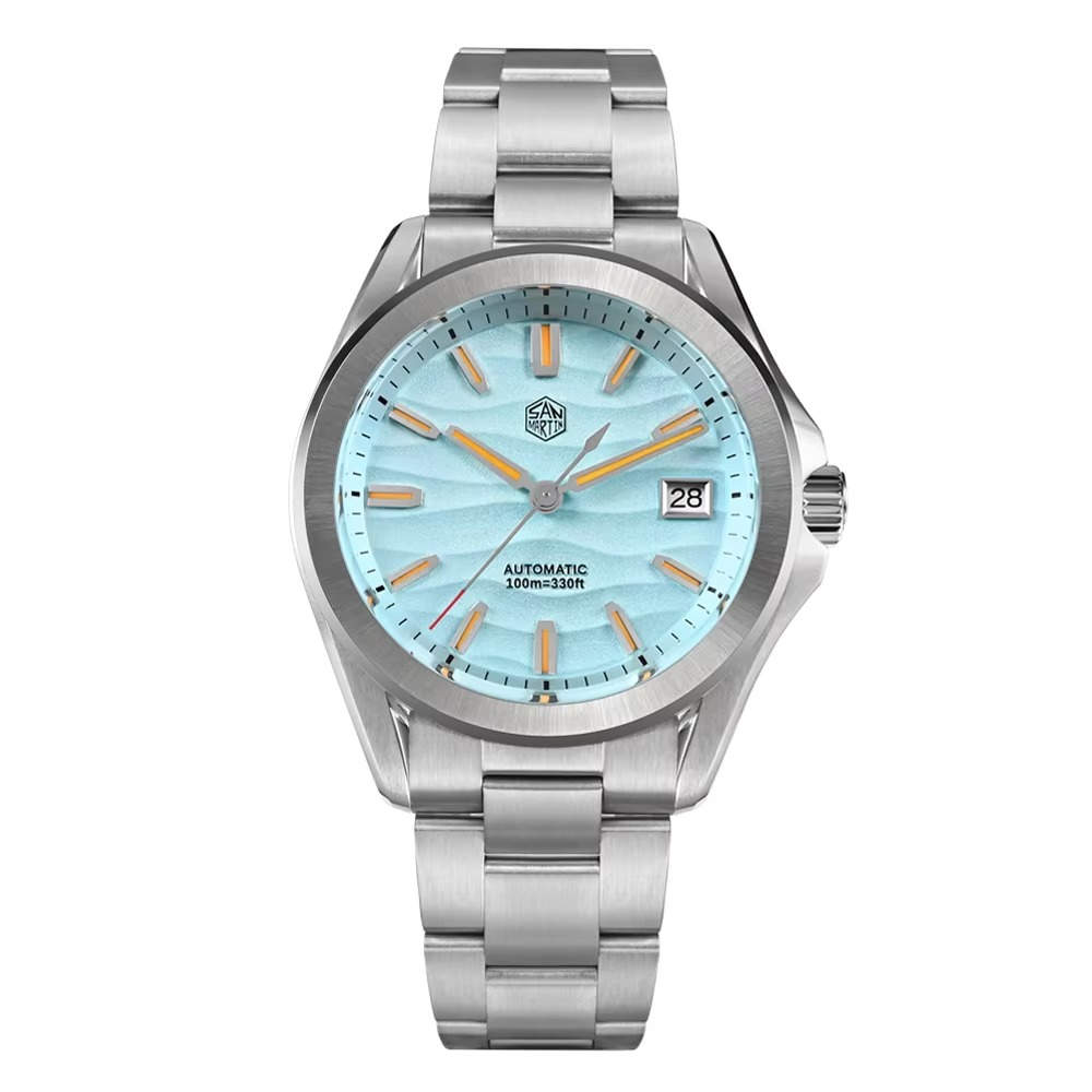 The San Martin Gada Watch is a stunning blend of rugged charm and refined elegance. The desert-textured stainless steel band and eye-catching multicolor dial make it a standout piece, while the reliable NH35 automatic movement keeps perfect time. Lightweight yet durable, it transitions effortlessly from formal events to everyday wear. A must-have for anyone who appreciates detail and craftsmanship in a dress watch.