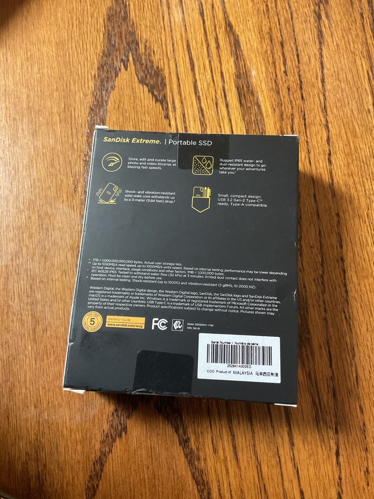 SanDisk 1TB Extreme Portable Black External SSD Up to 1050 MB/s USB-C NEW