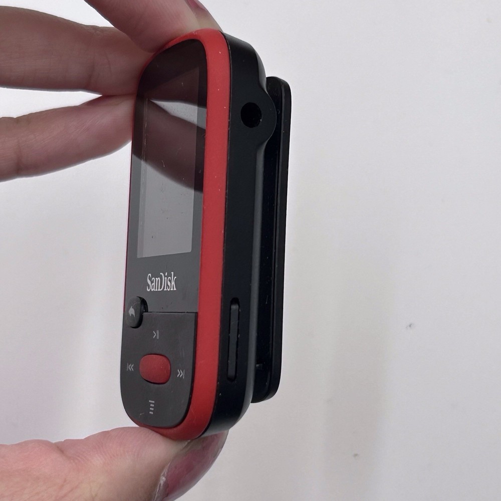 Features: Headphone Jack, Expansion Slot Model: SanDisk Clip Sport Color: Red Playable Media Format: MP3 Storage Capacity: 4 GB Product Line: MP3 Player Audio Outputs: Headphone Jack Brand: SanDisk Type: Clip Player Country of Origin: China