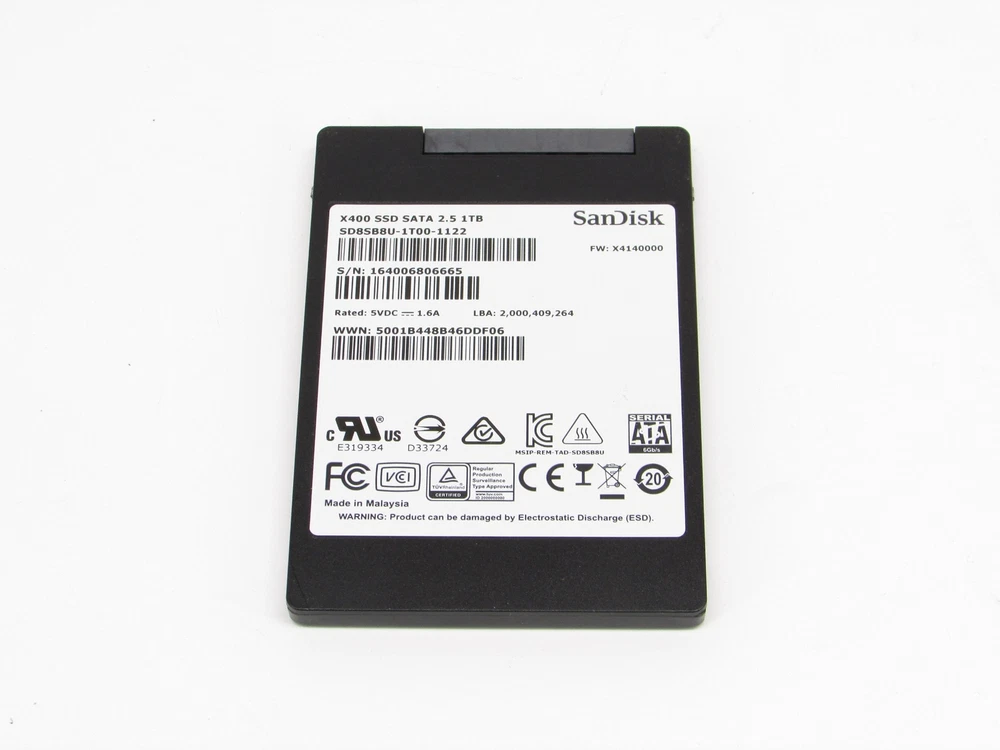 SanDisk SD8SB8U-1T00-1122 2.5" 1TB SATA Enterprise X400 6Gbs SSD Grade A . Why buy from OceanTech Our company has been serving customers since 2005, and we are proud to have built a reputation for providing top-notch products at unbeatable prices. Our refurbished computers and laptops go through a rigorous testing process to ensure they are in top working condition. We wipe all data to NIST and other industry standards, ensuring that our customers can trust the security of their devices. We hold multiple certifications, including R2v3, and we are committed to protecting the environment by properly disposing of scrap materials. Our inventory is always changing, so be sure to check back often to see what we have available. CUSTOMER SERVICE FREE RETURNS 30 or 90 DAYS WARRANTY (Please see listing for more details) ITEM CONDITION Cosmetic Condition Field (Assigned in Reuse) Functional Condition Field (Assigned in Reuse) C1 = Damaged (For materials recovery) F1 = Collectible or Specialty Equipment (Core Requirement 6.(e)(3)(A)). Collectibles are rare, vintage, and no longer manufactured or supported by the OEM. Specialty equipment are rare and specialized equipment not generally available in retail. May have broken or missing parts. C2 = Used Poor (Heavy use and age) Cosmetic blemishes are significant, such as multiple heavy dents, may require repair. Damages to latches, hinges, keyboards, etc. are prevalent. Critical parts are missing. F2 = Verified Specialty Electronics (Appendix D). Verified removed from operation with no known defects in functionality. No physical damage or defects. No corrosion. No missing parts. Part numbers and serial numbers verified accurate. C3 = Used Fair (Moderate use and age) Cosmetic blemishes are consistent with wear, including multiple dents, discoloration, and light to heavy scratches. Damage to latches, hinges, keyboards, etc. Some parts, panels, bezels, or covers may be missing. F3 = Key Functions Working (Appendix C – Test and Repair). A subset of the primary functions of the device that an ordinary user of the device expects to function are verified working through manual or software tests. Software may not be loaded or configured. Hardware required for key functions to be tested may have been removed after testing (e.g. Hard Drive). May be missing components or parts not essential to key functions. Secondary functions may not be tested or working. May not include Focus Materials (e.g. Battery) that are not working or not tested. All missing components or parts will be listed for each item. C4 = Used Good Cosmetic blemishes include scratches and/or other surface imperfections from consistent use, but equipment is in good condition overall. Minor wear of labeling may be visible. Small dents and small areas of discoloration may be present from the removal of tags No damage to latches or hinges, not any missing parts, panels, bezels or covers. F4 = Hardware Functional (Appendix C – Test and Repair). All hardware is tested and verified working through manual or software tests. No missing or damaged components or parts. Software not loaded or configured. No hardware defects. C5 = Used Very Good Cosmetic blemishes include minor scratches and/or other surface imperfections from consistent use, but equipment is in good condition.Minor wear of labeling may be visible. Minor dents and areas. F5 = Refurbished (Appendix C – Test and Repair).All functions tested and verified working through software tests. Loaded and configured with legally licensed software for full operations. Software test results are available. No hardware or software defects. C6 = Used Excellent. Overall excellent cosmetic condition. May have light scratches or other minor blemishes from normal wear. Minor cosmetic blemishes have no impact on the system’s overall functionality or performance.Fully cleaned with all non-original labels removed. No missing parts. F6 = Like New (Appendix C – Test and Repair). All functions tested and verified working through software tests. Repaired with OEM original parts. Loaded and configured with original manufacturer’s legally licensed software for full operation. Meets OEM specifications for full original functionality. Software test results are available. Zero defects. C7 = Certified Pre-Owned (Seller or Manufacturer Refurbished). Used equipment that has been fully restored to like-new condition with warranty.Fully cleaned and cosmetically repaired with no blemishes, no missing parts. C8 = Unused. New, out of box, unused equipment removed from original packaging with no signs of wear or alteration. C9 = New Open Box. New, unused equipment in original packaging where factory seals have been broken. No signs of wear or alteration. SHIPPING Enjoy free shipping on select orders within the contiguous 48 states, with the exception of Alaska, Hawaii and US territories. For these areas, please contact us for a shipping quote or choose USPS Priority Mail as an alternative. We use a variety of shipping methods such as Fedex, UPS or USPS and reserve the right to choose the most cost-effective option for you. Please note that for orders over $750, a signature is required upon delivery. We are required to ship to the address provided on your paid order. For those needing expedited shipping, send us a message with your request and we will do our best to accommodate your needs. Please note that same-day shipping is not guaranteed if the order is placed after 12pm CST. All orders will ship the following business day after payment is received. Please note that we are closed on weekends and observe Federal Holidays, following the USPS annual shipping calendar. Unfortunately, at this time, we are unable to ship outside of the USA but we hope to offer this service in the future. We apologize for any inconvenience. RETURNS We want our customers to have security and peace of mind when making a purchase. We participate in eBay’s 30 Day Money Back Guarantee program and a