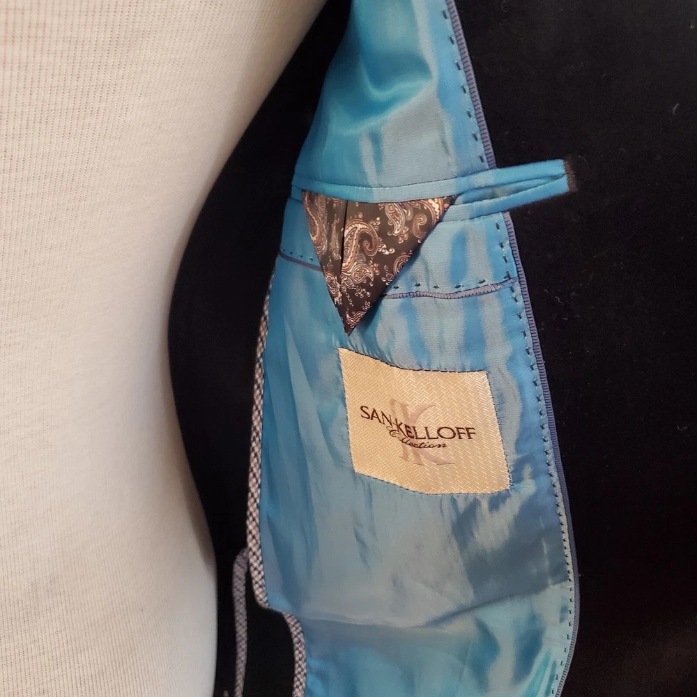 22 1/2" underarm to underarm 20 1/2" waist 20" shoulders 29 1/2" shoulder to hem Measured laying flat San-Kelloff Collection Sportcoat Size 54.