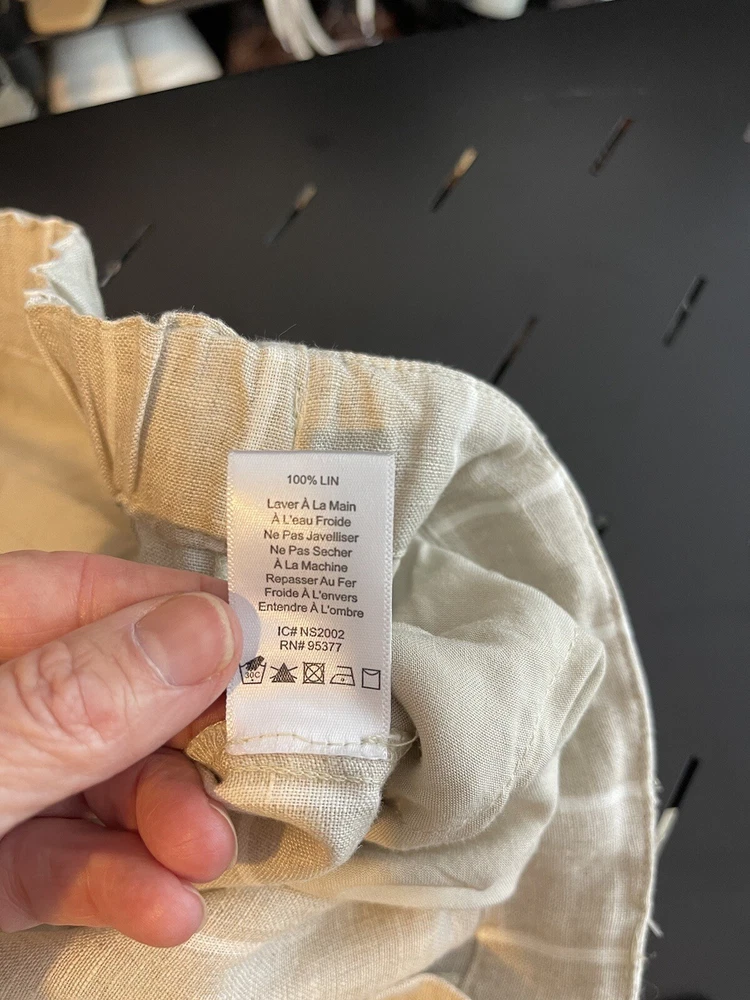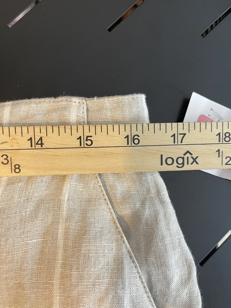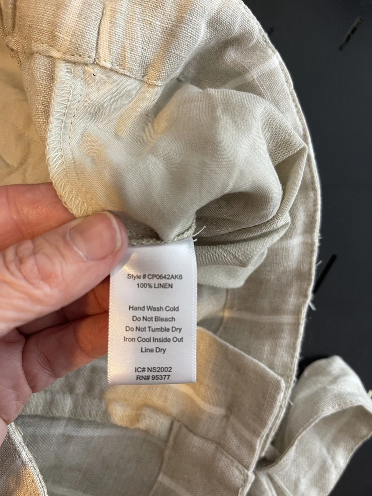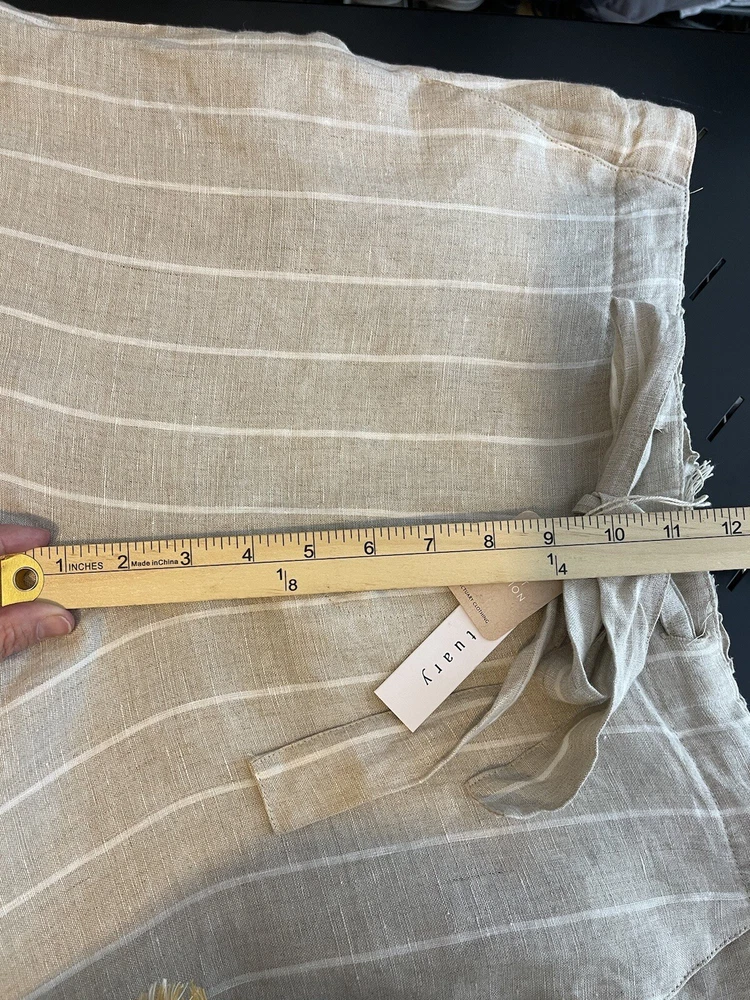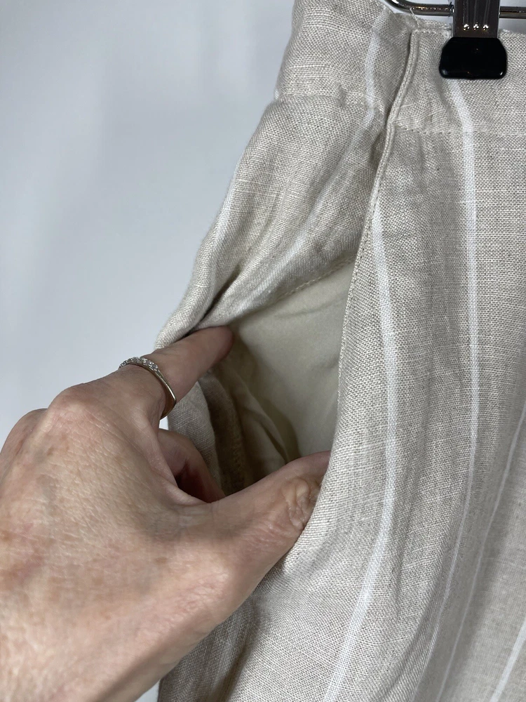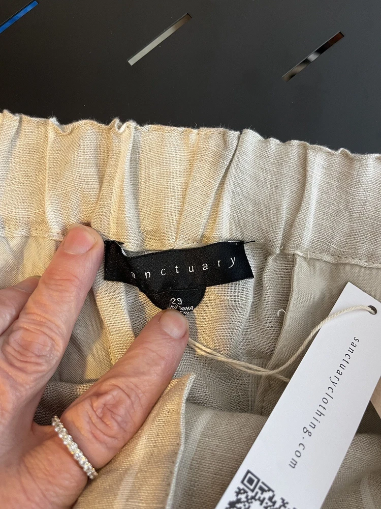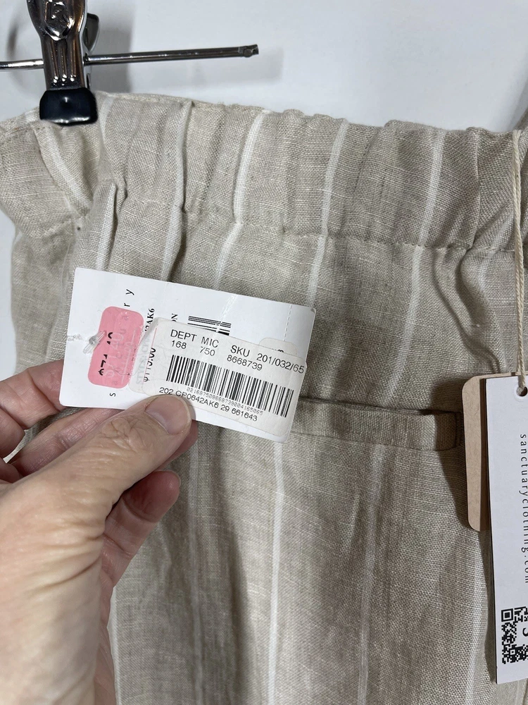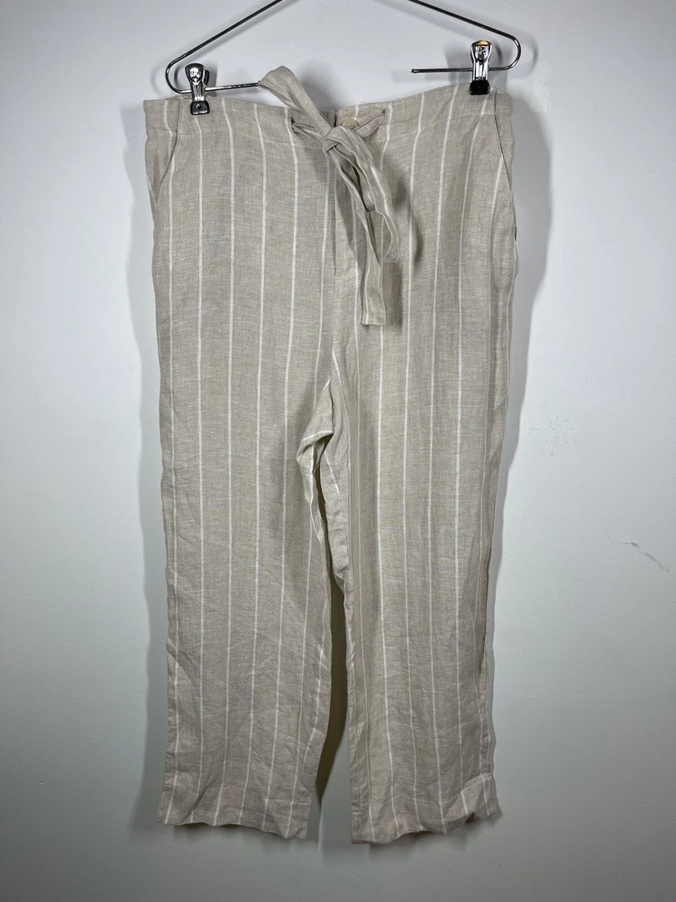 Sanctuary Women’s 100% Tan Linen White Striped Pants Tie Waist Pockets Size 29