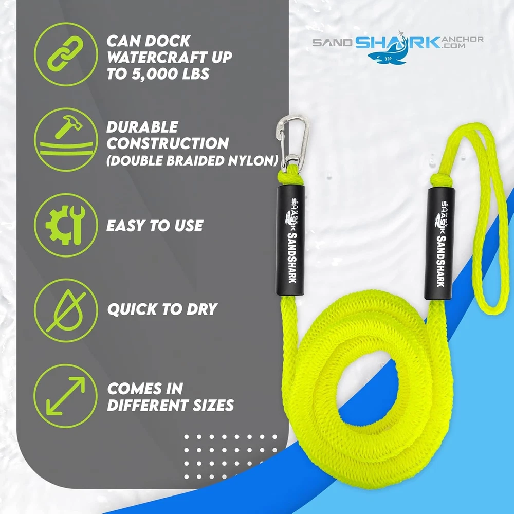 SandShark Premium Anchor Bungee Dock Line. Boat 7-14ft, Neon Green Description Features: Shock Absorbing: The bungee boat dock line the shock to your dock or anchors. These bungee dock lines for boats will give you peace of mind that your watercraft will stay put while anchored or docked! Your Sand Shark Anchor will be most effective by reducing the "SHOCK" on your dock lines or anchor from the waves. These marine boat dock bungee tie turn that "Hard-Snap" into a "Gentle-Pull". Boat Dock Lines & Rope : The boat dock lines bungee is hidden inside the ropes to act as a built-in dockline snubber. Dock bungee lines for boats, the "MUST HAVE" boating accessories and boat stuff! Anchor Line : Great buddy to your Sand Shark Anchor. Stop waves from pulling your anchor out! Now you can relax at the beach when the "big waves" are coming in! Get Yours Today! One of the best boat accessories, seadoo accessories, kayak accessories, bungee boat lines, pontoon boat accessories, mooring rope, or jet ski accessories! Must have boat line and boat ropes! Product Details: Size: 7-14ft Material: Polypropylene Color: Neon Green Brand: SandShark Vehicle Service Type: Watercraft Fastener Material: Stainless Steel Fastener Type: Snap Tensile Strength: 4000 Pounds Number of Pieces: 1 Product Dimensions: 84"L x 10"W Manufacturer: SandShark, Inc. Unit Count: 1.0 Count Model: BUN-DOC-714-GREEN Item Weight: 12 ounces Country of Origin: China Item model number: BUN-DOC-714-GREEN Manufacturer Part Number: BUN-DOC-714-GREEN Size: 7-14ft Material: Polypropylene Color: Neon Green Brand: SandShark Vehicle Service Type: Watercraft Handling We will ship all orders within 1 business day of payment. Delivery We Do Not Ship Outside of the Continental US. Return Policy All items qualify for returns within 30 days of receipt. Buyer is responsible for return shipping on any item that is not damaged. Feedback We take our reputation seriously, we buy and sell online, so we understand the value of trust. If you are unsatisfied with your order, please contact us and we will work with you to resolve it to your satisfaction.