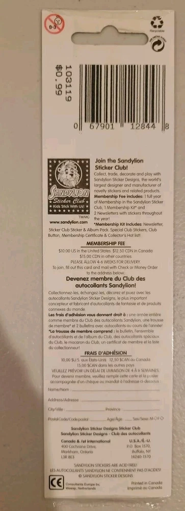New in package single sheet of Sandylion Prismatic Bear stickers