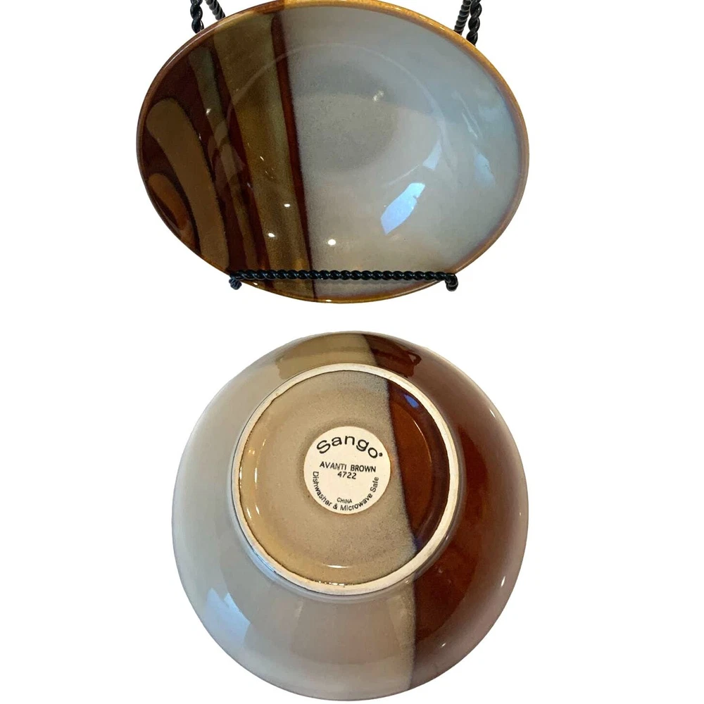 Sango Avanti Brown 4722 Cereal Soup Bowls Set of 4 Glazed Stoneware Microwave and Dishwasher Safe Excellent Preowned Condition