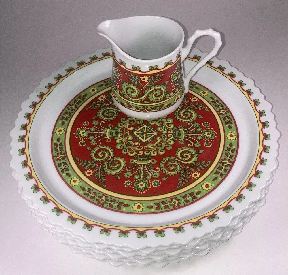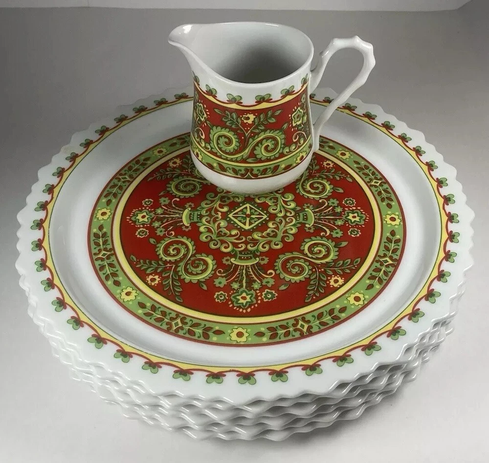 This rare and very hard-to-find Sango Belgrade creamer is a perfect addition to your collection. Featuring its signature elegant design, this piece is made in Japan and remains in excellent condition with no cracks or flaws. A true gem for vintage dinnerware enthusiasts! We are selling **sets of 2 plates**, but feel free to contact us about purchasing a larger set or including the creamer with matching plates. Currently, we have 6 plates and 1 creamer available. *Please see photos for additional details and ask any questions before purchasing #SangoBelgrade #VintageDinnerware #MadeInJapan #RareFind #CollectiblePlates #CeramicCreamer #VintageChina #AntiqueDinnerware #SangoChina #HomeDecor #DishwareCollection #CollectorsItems #VintageStyle #ElegantDining #PorcelainCreamer #FineChina #DishwareLovers #VintageTableware #KitchenCollectors #DinnerwareAddict