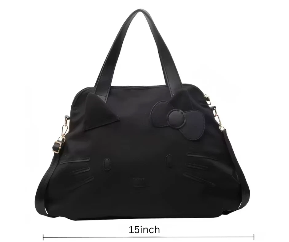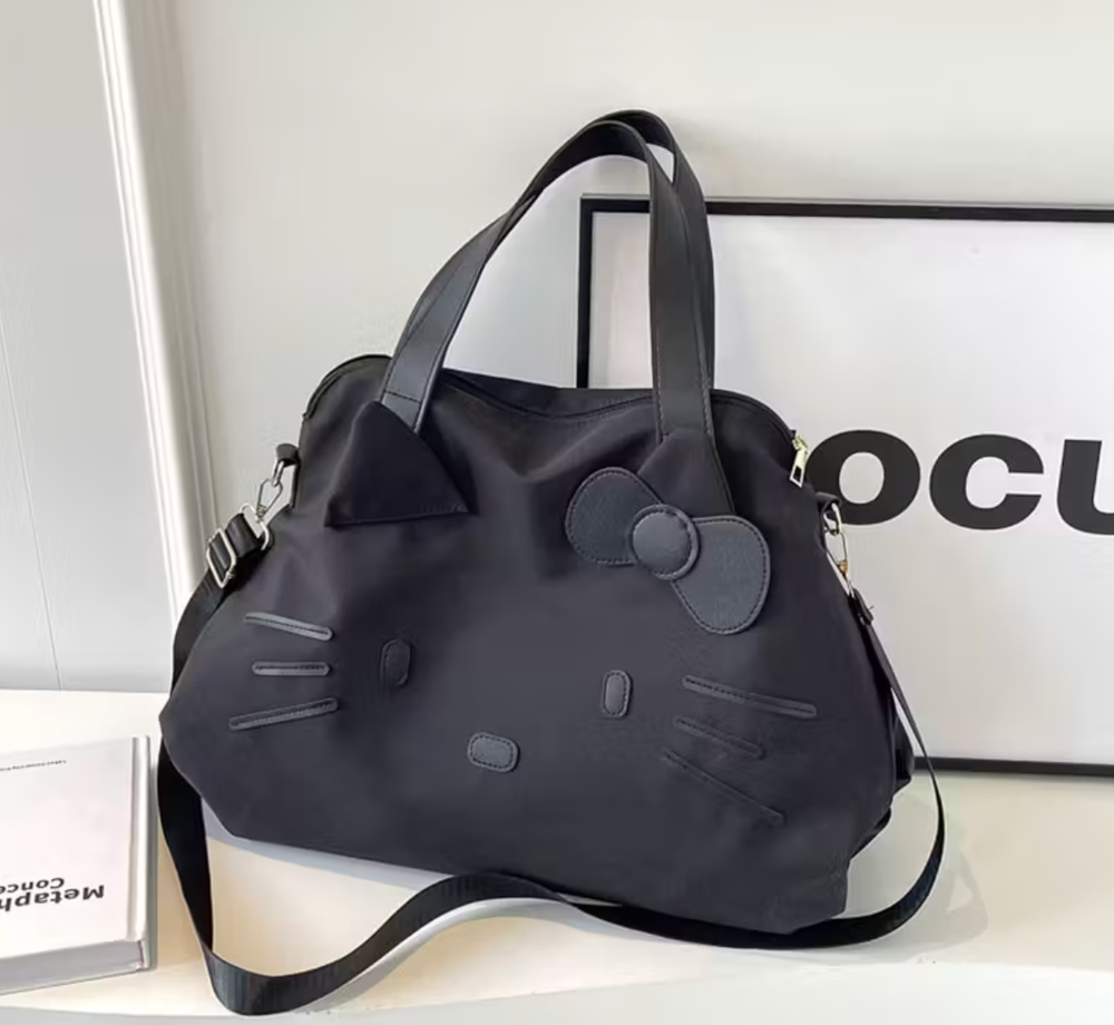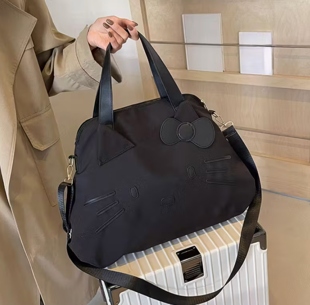 Sanrio Hello Kitty 2025 Official Spacious Tote Bag β Large Travel Weekender Authentic Sanrio Hello Kitty 2025 release. This officially licensed spacious tote bag combines adorable design with everyday practicality, making it perfect for travel, work, gym, or weekend getaways. Crafted in sleek black nylon, the bag features embossed Hello Kitty facial details and a signature bow accent for a subtle yet iconic look. The roomy interior and structured silhouette make it ideal as a carry-on or overnight bag. β¨ Features: Official Sanrio Hello Kitty 2025 release Large spacious interior for travel essentials Durable lightweight nylon exterior Dual top handles Adjustable & detachable shoulder strap Gold-tone hardware Secure zip-top closure Back luggage sleeve (slides over suitcase handle) Structured bowling-style silhouette π Approximate Dimensions: (Add exact measurements for higher buyer confidence) Length: Height: Width: π Condition: Brand new This 2025 Hello Kitty tote is both collectible and functional β perfect for Sanrio fans, travel lovers, or anyone who loves chic character accessories.
