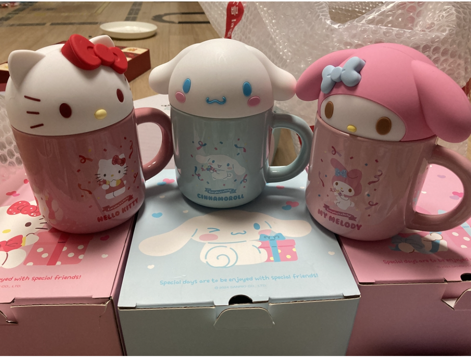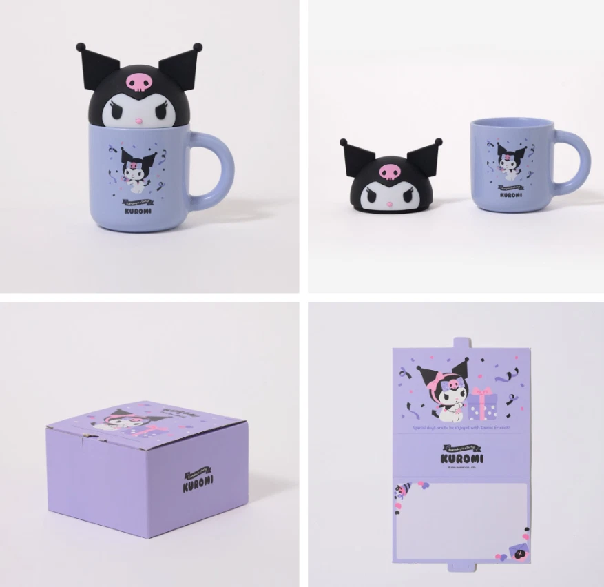 Sanrio Party Face Mug Cup Set (Free Insulated Lid Included) Add a touch of cuteness to your daily coffee or tea time with this Sanrio Party Face Mug Cup Set . Featuring adorable character face designs, this set is perfect for Sanrio fans and collectors. ๐ธ Available Options Hello Kitty My Melody Kuromi Cinnamoroll ๐ฆ Set Includes 1 ร Mug Cup 1 ร Lid (helps retain warmth & prevent dust) 1 ร Postcard ๐ Size (Approx.) Hello Kitty : 85 ร 56 ร 85 mm My Melody : 122 ร 50 ร 85 mm Kuromi : 104 ร 65 ร 85 mm Cinnamoroll : 118 ร 45 ร 85 mm โ Capacity Approximately 350 ml