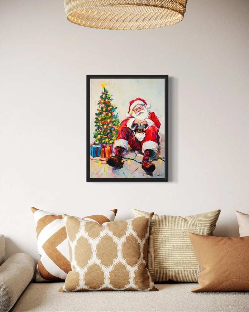 Santa Tangled Christmas Lights Art Print Poster MATERIAL: 230 gsm Matte Paper SIZE INFORMATION 11x14 in - 27x35 cm 16x20 in - 40x50 cm 18x24 in - 45x60 cm 24x36 in - 60x90 cm HAVE IT FRAMED (BLACK FRAME OPTION AVAILABLE) 11x14 in - 27x35 cm 16x20 in - 40x50 cm 18x24 in - 44x60 cm SHIPPING & HANDLING All your orders will be carefully packaged in a hard tube box or standard USPS box if you buy it framed. Your order will be shipped within 1-3 business days and comes with a tracking number. All orders are made and shipped in the USA. WHAT WE VALUE We take pride in all our artwork and make sure all our customers are happy with their purchases. So if you have any questions or issues, please do contact us! We will respond to any questions and are happy to resolve any problems you may have. 30 DAYS MONEY BACK GUARANTEED! If for any reason you are not happy with your purchase, please send it back for a FULL REFUND.