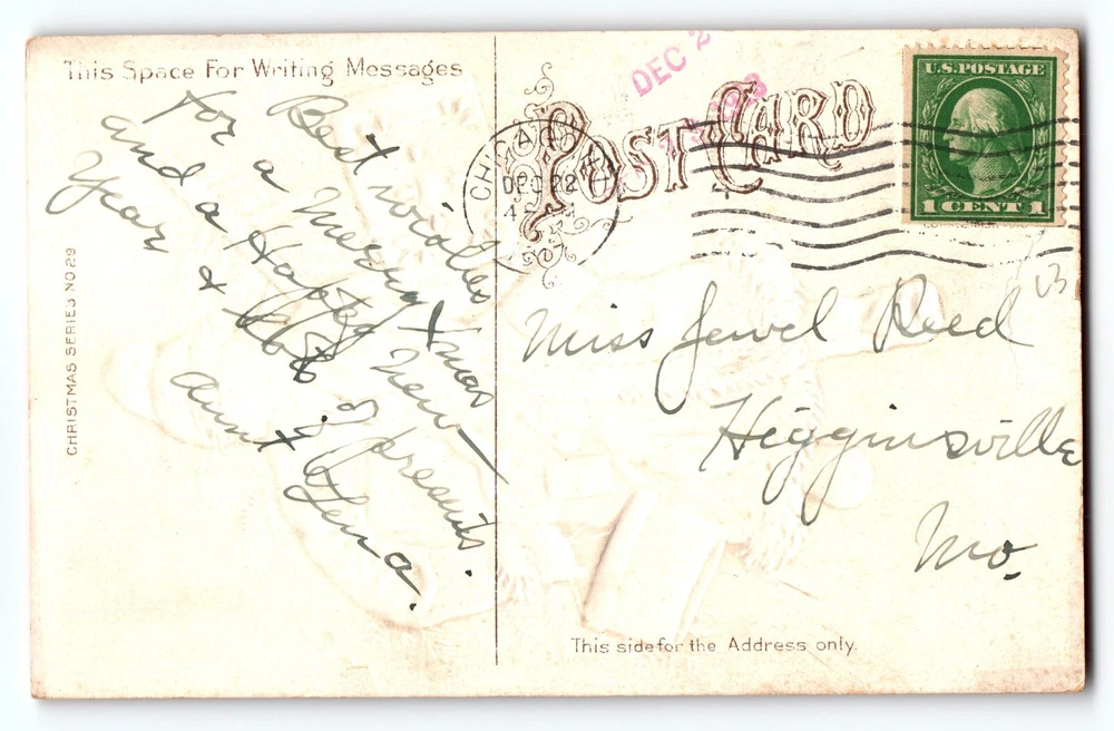 Posted with cancel. Antique original vintage post card. Has creases, corner dings, and age wear. Stock #santa593. Additional postcards are in our store. All post cards are old originals and may or may not have writing on back. Vintage Postcards Make Great Holiday Gifts.