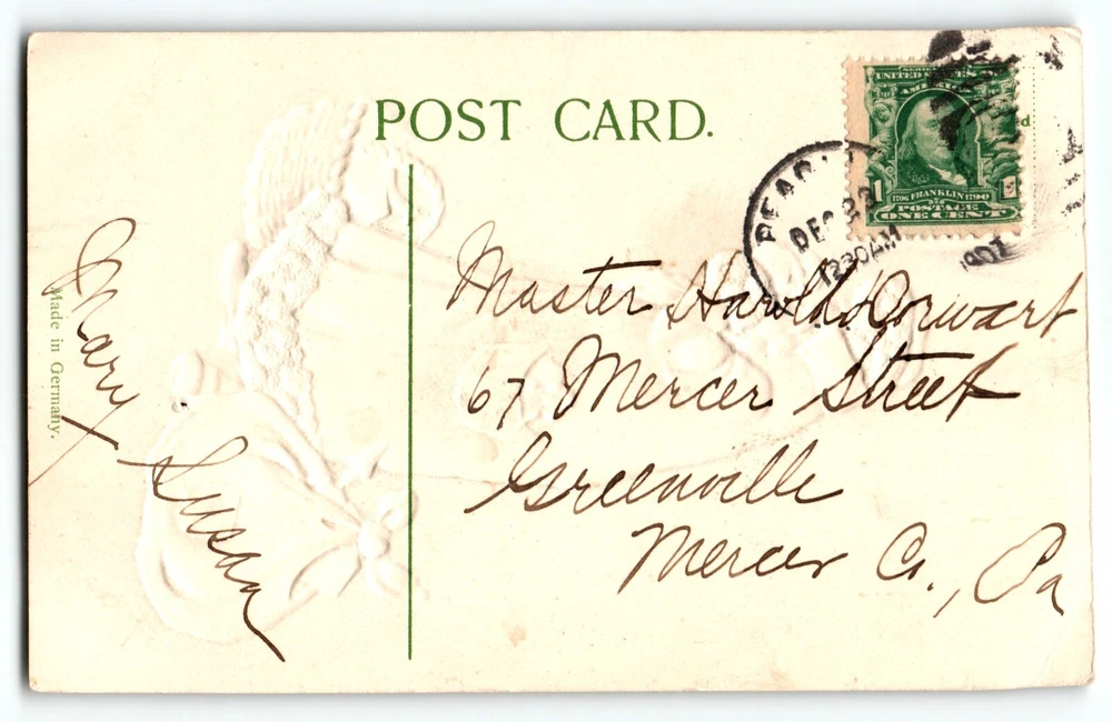 Posted with 1907 cancel. Antique original vintage post card. Has top wear, creases, corner dings, and age wear. Stock #santa143. Additional postcards are in our store. All post cards are old originals and may or may not have writing on back. Bundle and save by using cart and making single payment.