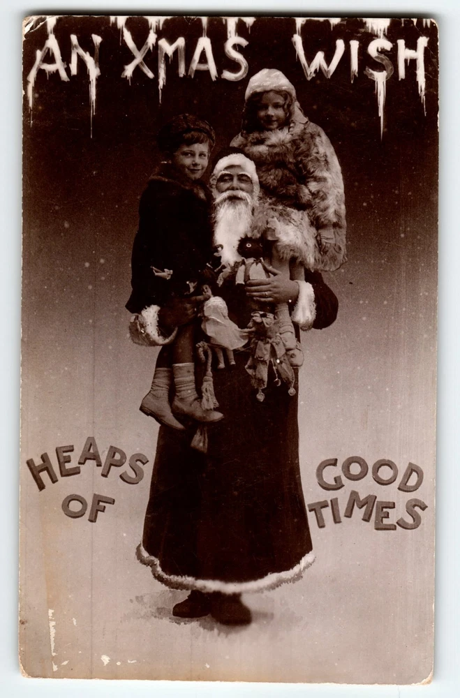 Unposted. Antique original vintage post card. Has creases, corner dings, and age wear. Stock #santa140. Additional postcards are in our store. All post cards are old originals and may or may not have writing on back. Bundle and save by using cart and making single payment.