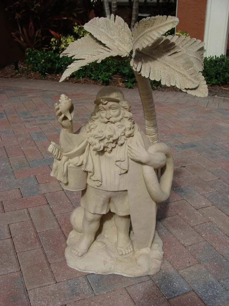 This Santa Claus figurine is a perfect addition to your holiday collection. With a nautical and coastal theme, it features a Santa shape under a palm tree with beach toys and a seashell design. The beige color and resin material make it a medium-sized statue with carvings that add to its charm. Measuring 32 inches in height and 18 inches in width, this handmade figurine is perfect for display on your mantel or shelf. It is a great gift for your loved ones who love Santa and the beach. Get ready to add a unique touch to your holiday decor with this Santa Claus figurine.
