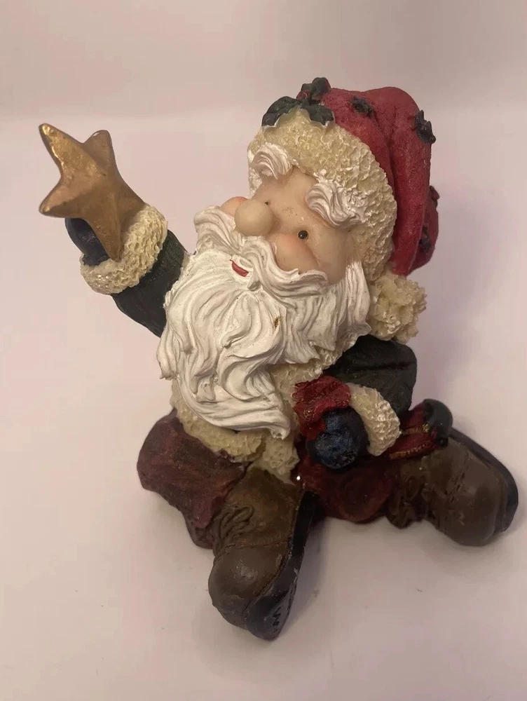 This beautiful figurine depicts Santa holding a star, adding a touch of elegance to your holiday decor. The intricate details on the star and Santa's robe make it a perfect addition to any collector's display. Crafted with high-quality materials, this figurine is a must-have for anyone who loves unique and charming holiday decorations. Whether you're a fan of Santa or stars, this piece is sure to delight. Add it to your collection today! Approx. 3.5” H. No box.